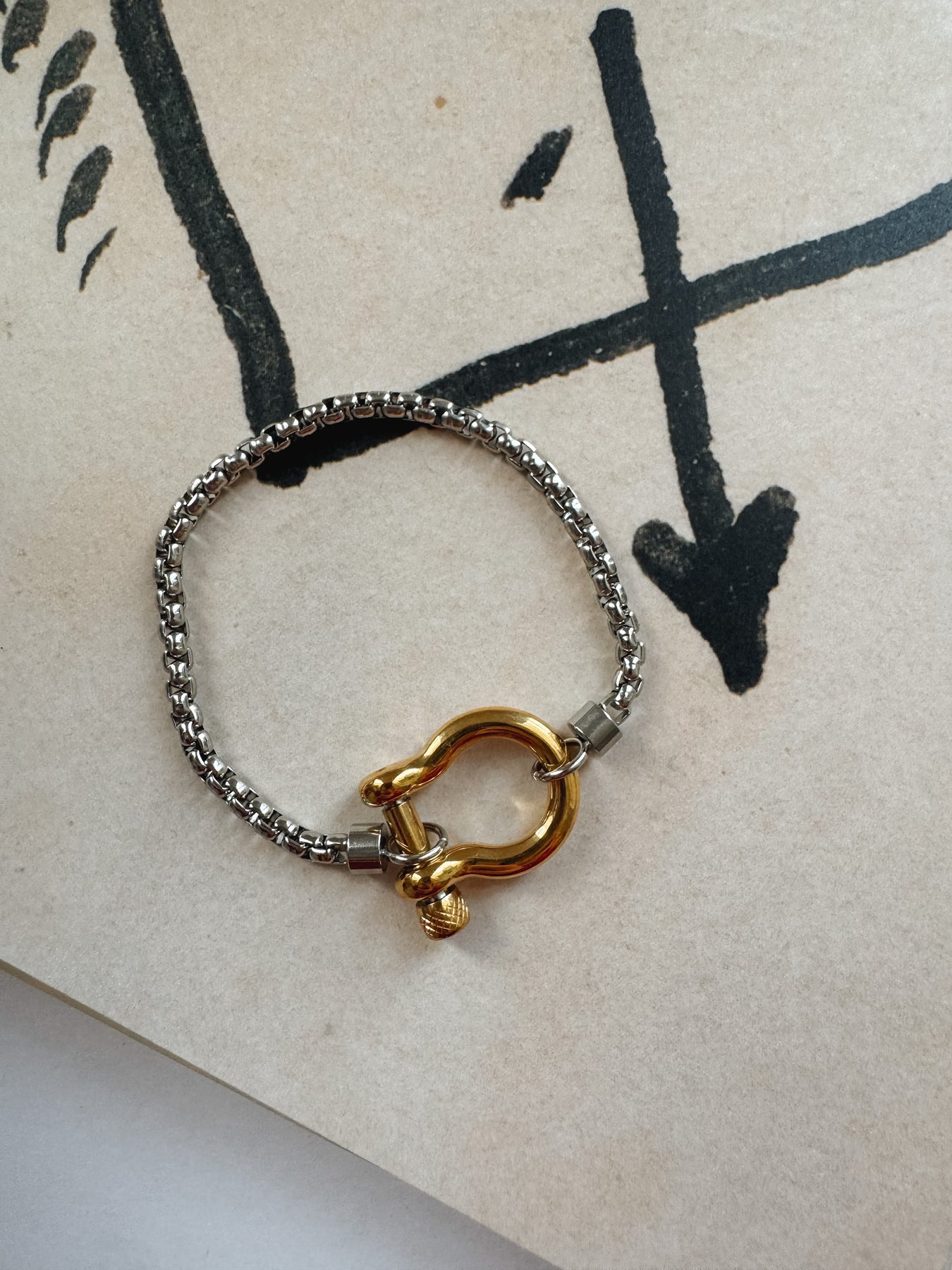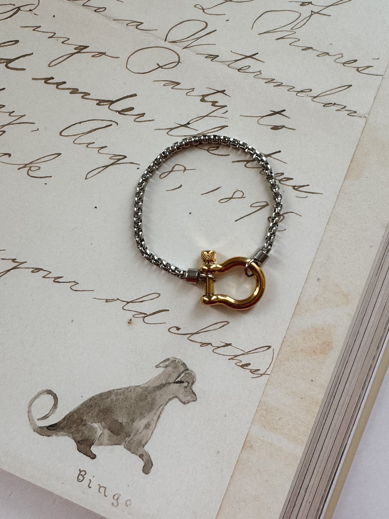 Looking for a bracelet that feels bold, modern, and effortlessly cool? The Harbor Link Bracelet features a sleek silver chain finished with a sculptural gold clasp for a striking mixed metal look. It’s polished yet relaxed, the kind of piece that instantly elevates everyday outfits.
