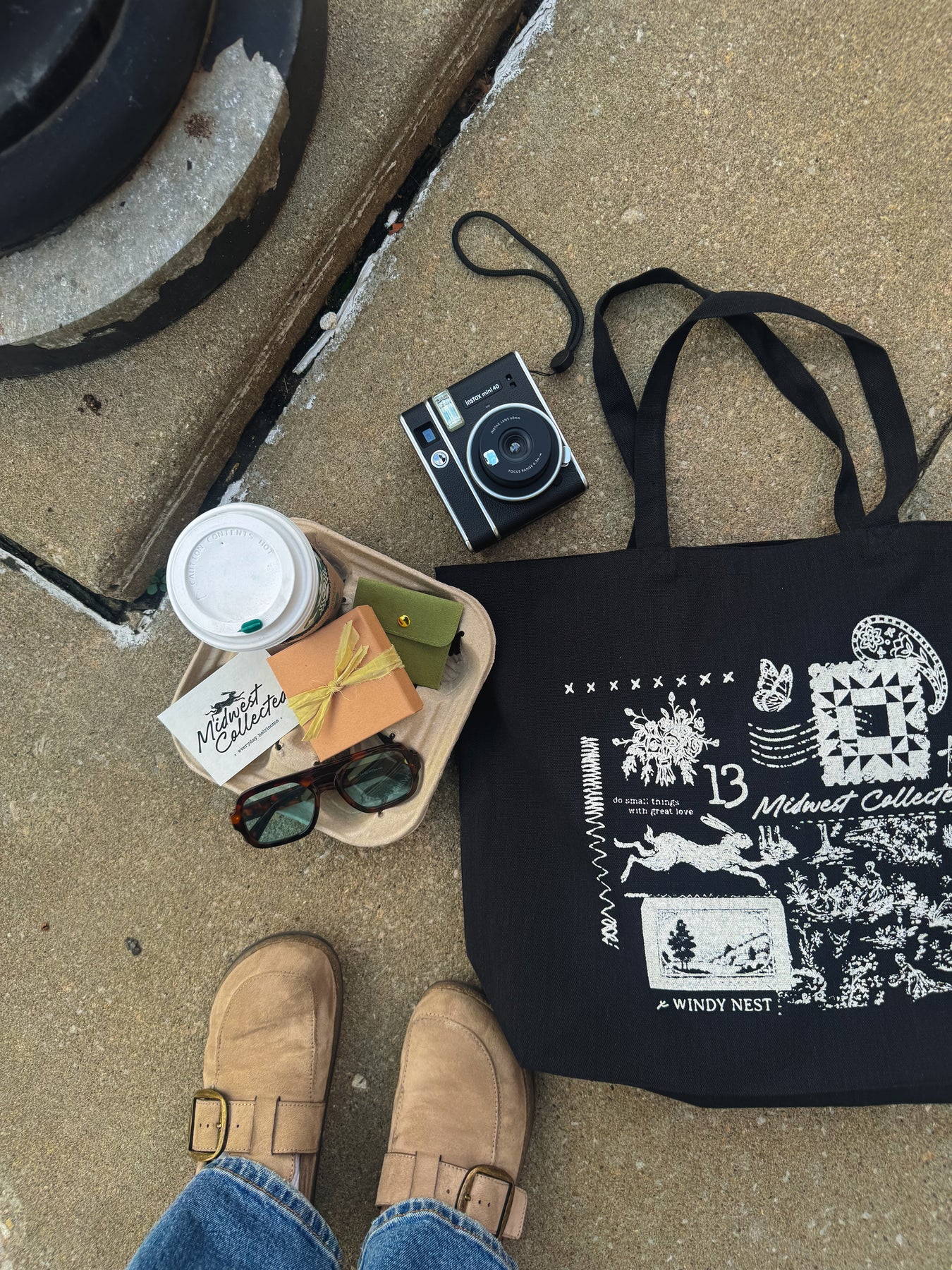 A love letter to the Midwest, stitched into your everyday carry. Our Windy Nest Postcard Tote is more than just a bag - it’s part of the club. Featuring the same collage-style artwork as our Collective Crew, this tote celebrates the beauty of slow living, handmade heritage, and quiet moments that matter. Made from durable recycled canvas, it’s the kind of piece that says, “Yes, I’m with them” - a subtle nod to our community of collectors, wanderers, and homebodies alike.