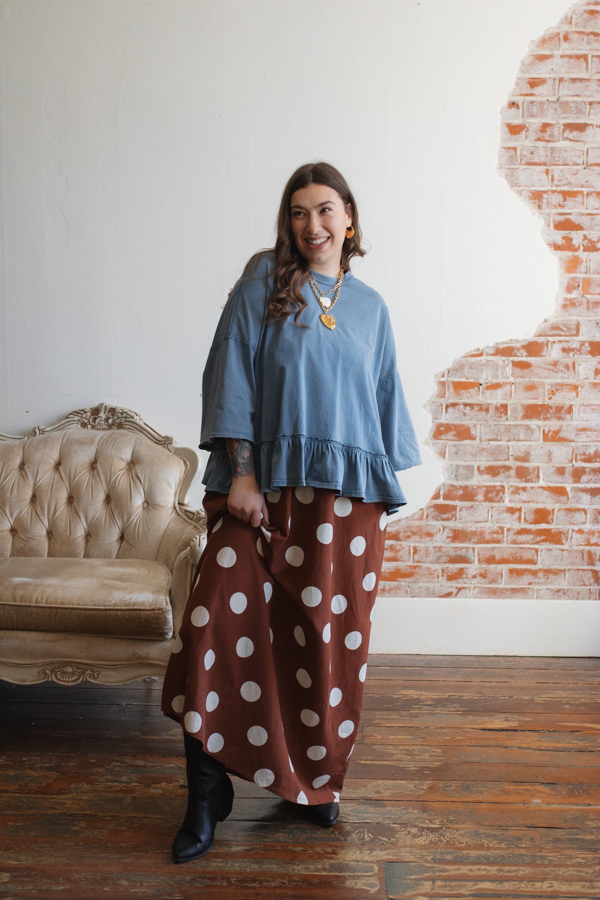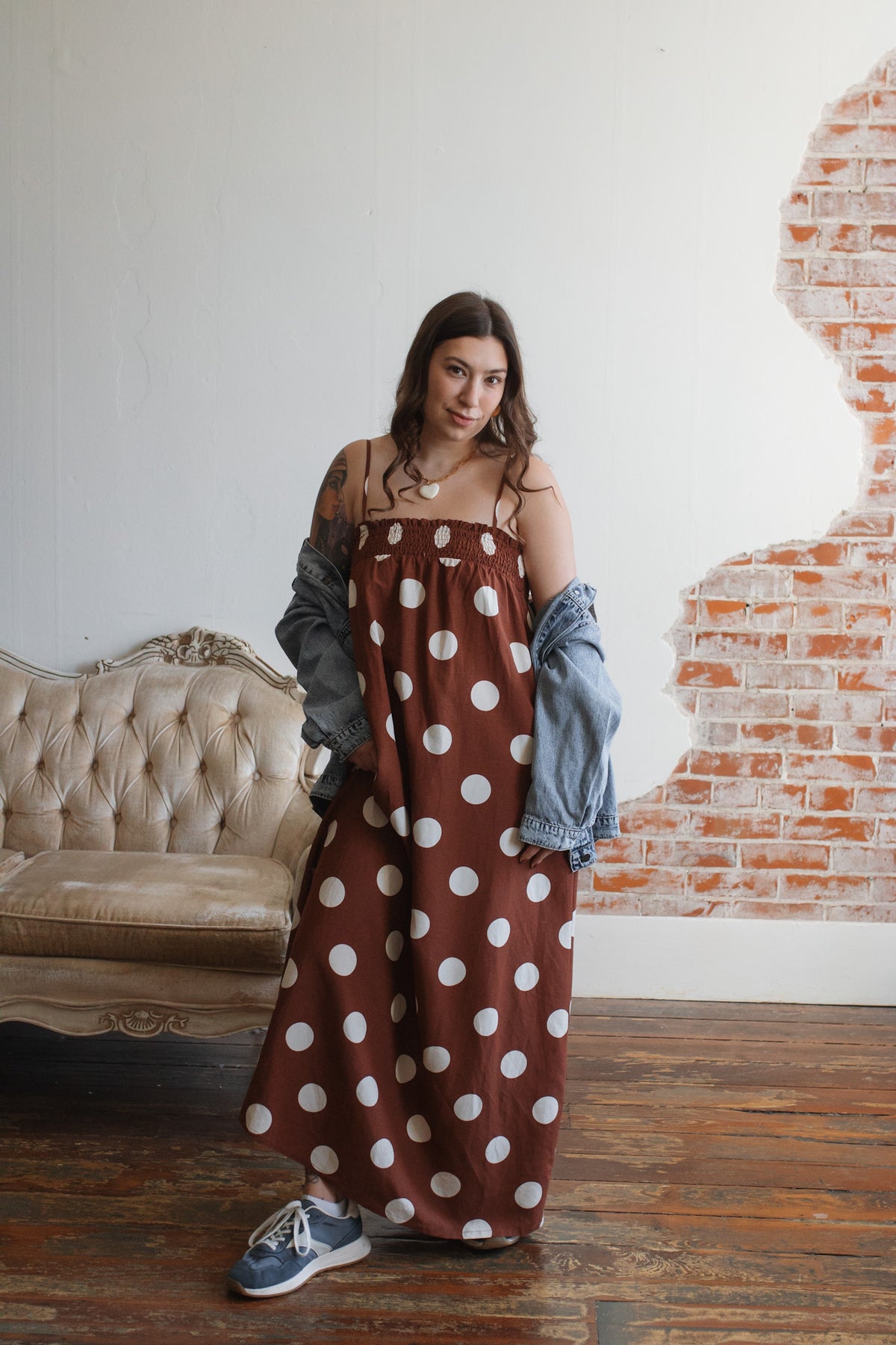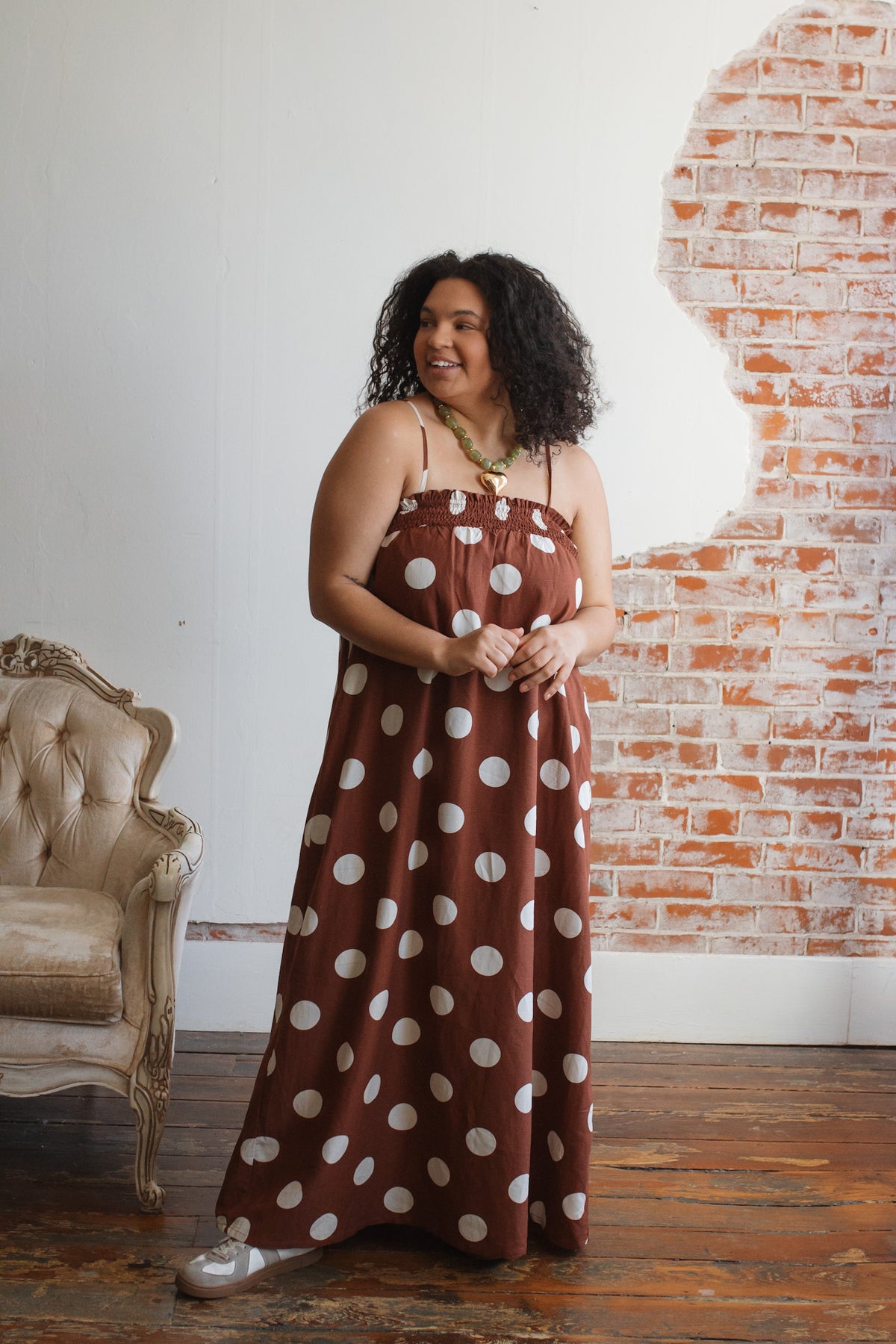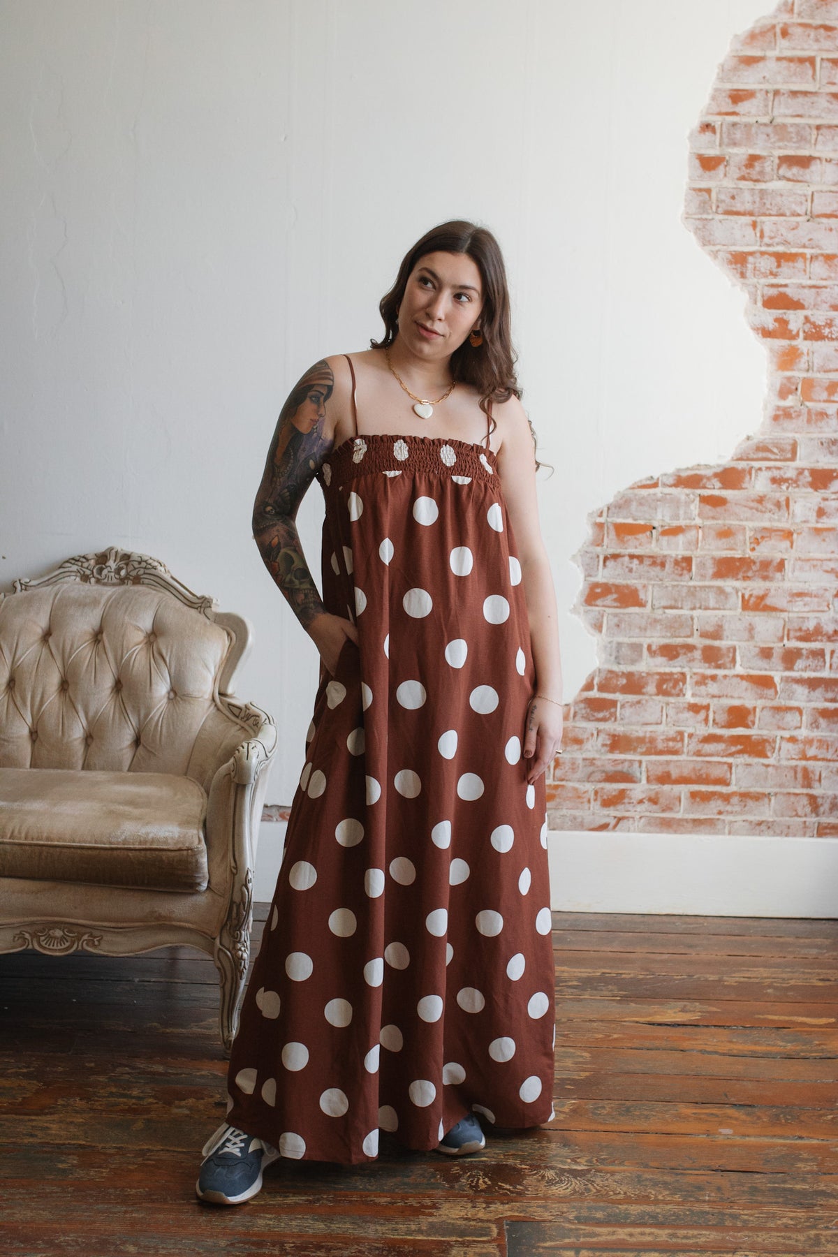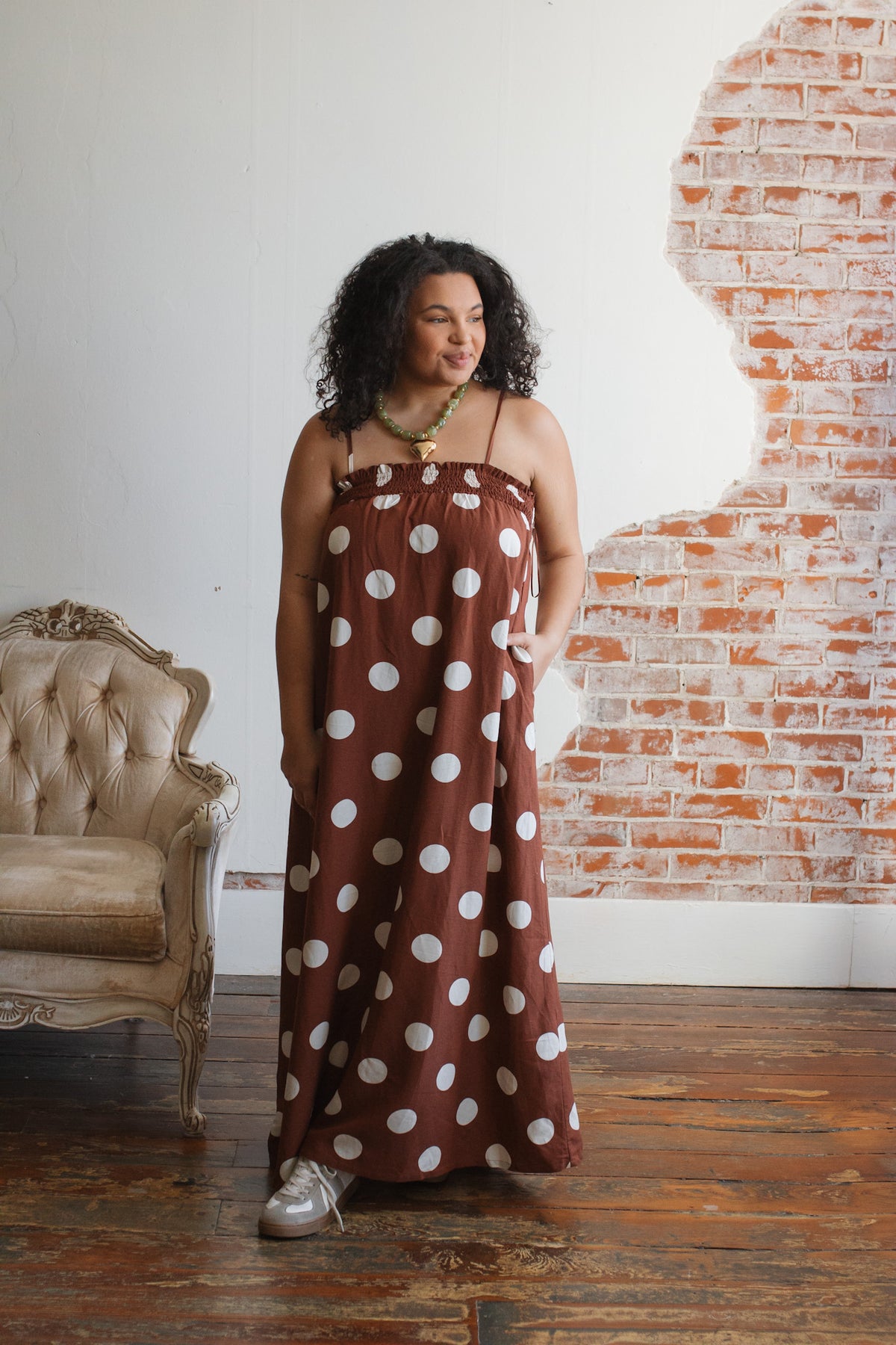 Looking for a wild-card dress that’s as comfortable as it is playful? The Scarlett Polka Dot Maxi Dress delivers standout charm with its floaty silhouette, ultra-stretchy smocked bodice, and vintage-inspired polka dots. Made from a breathable rayon-linen blend, it’s as easygoing as it is eye-catching. With adjustable straps and hidden pockets, this dress is ready for sunshine strolls, coffee catch-ups, or layering when temps dip.