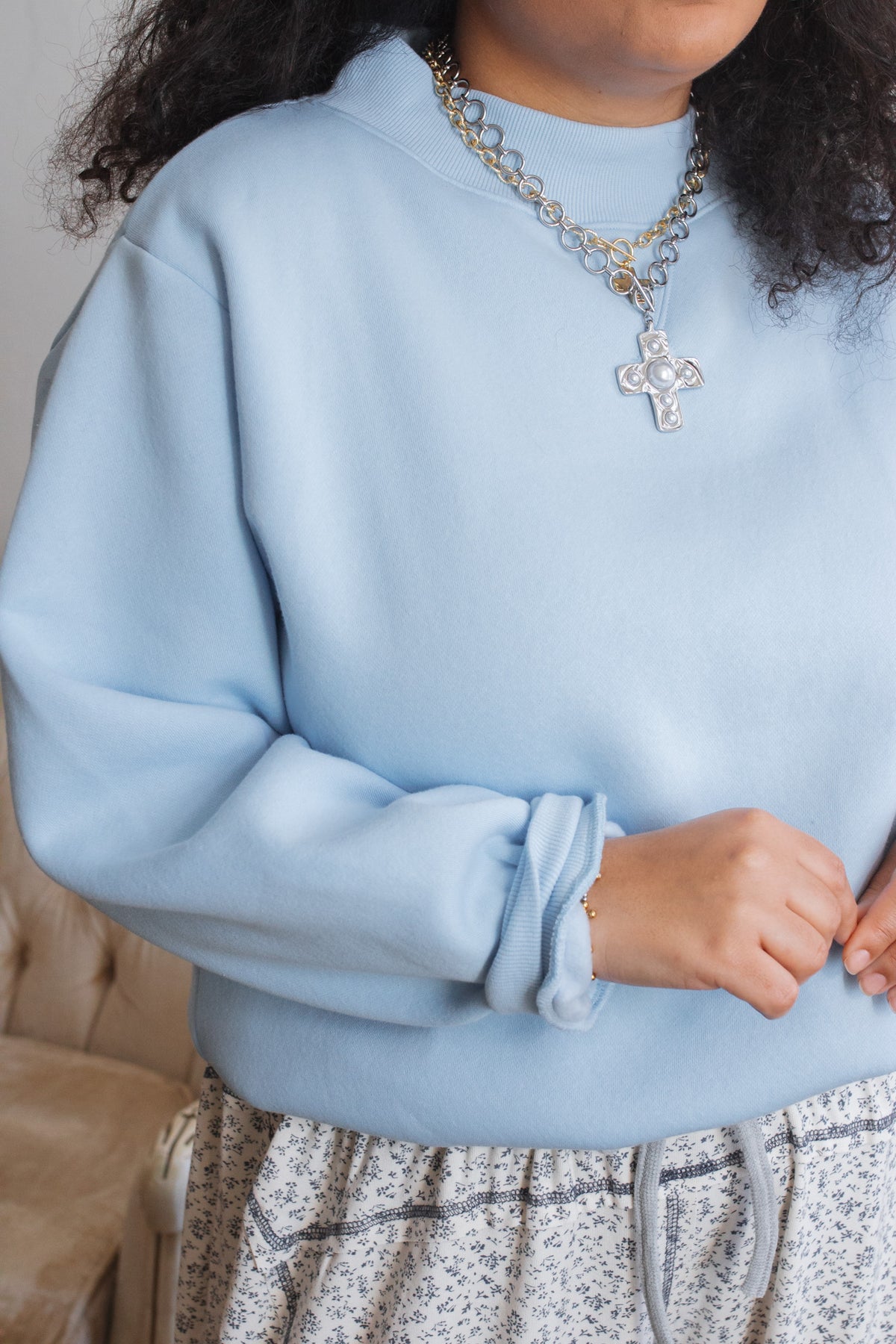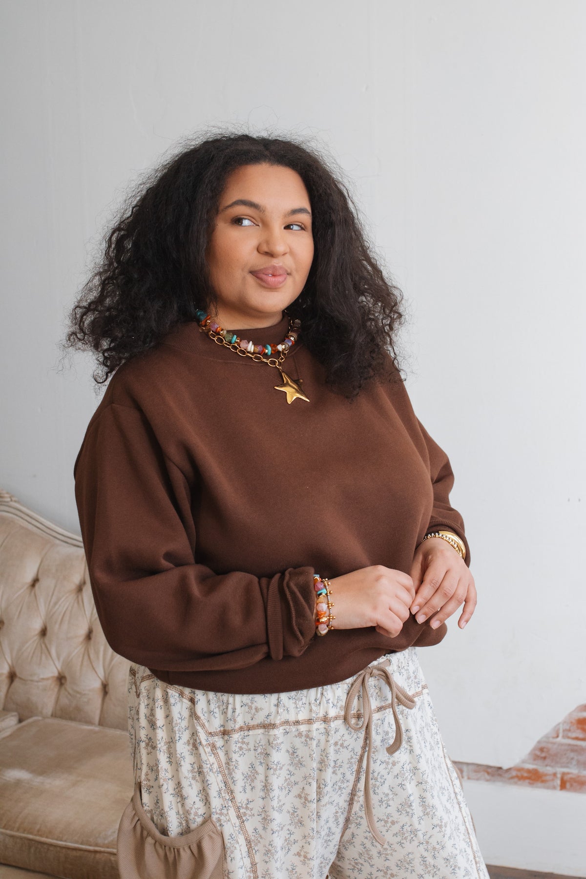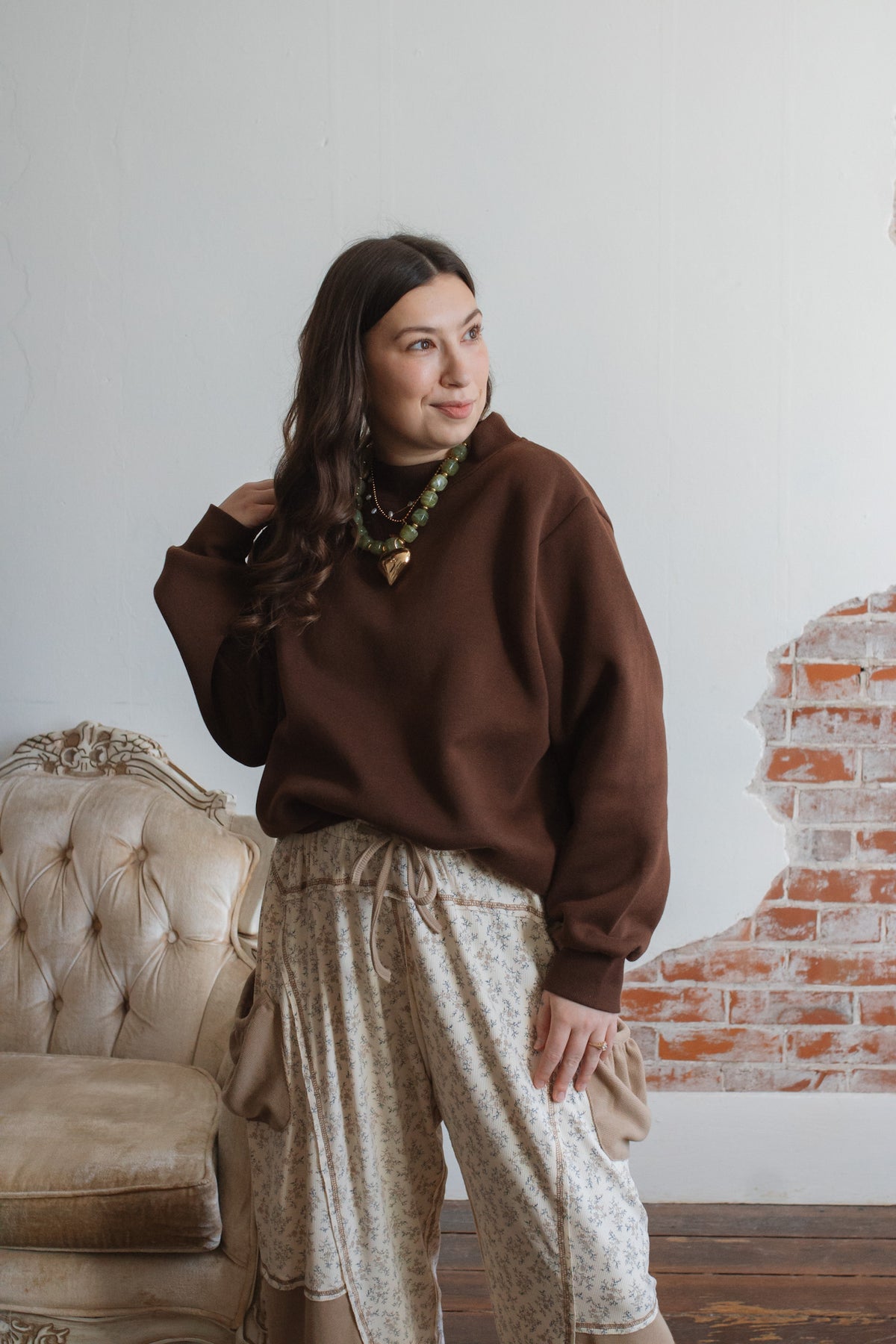 Looking for a not-so-basic basic? The Quinn Mock Neck Sweatshirt is the secret sauce to effortless layering and polished comfort. Made from an ultra-soft cotton blend with that just-right slouch, it features a mock neckline that adds a touch of structure without feeling fussy. Whether you're dressing it up with bold pants or keeping it simple with sweats, this one checks all the boxes: cozy, elevated, and endlessly wearable.
