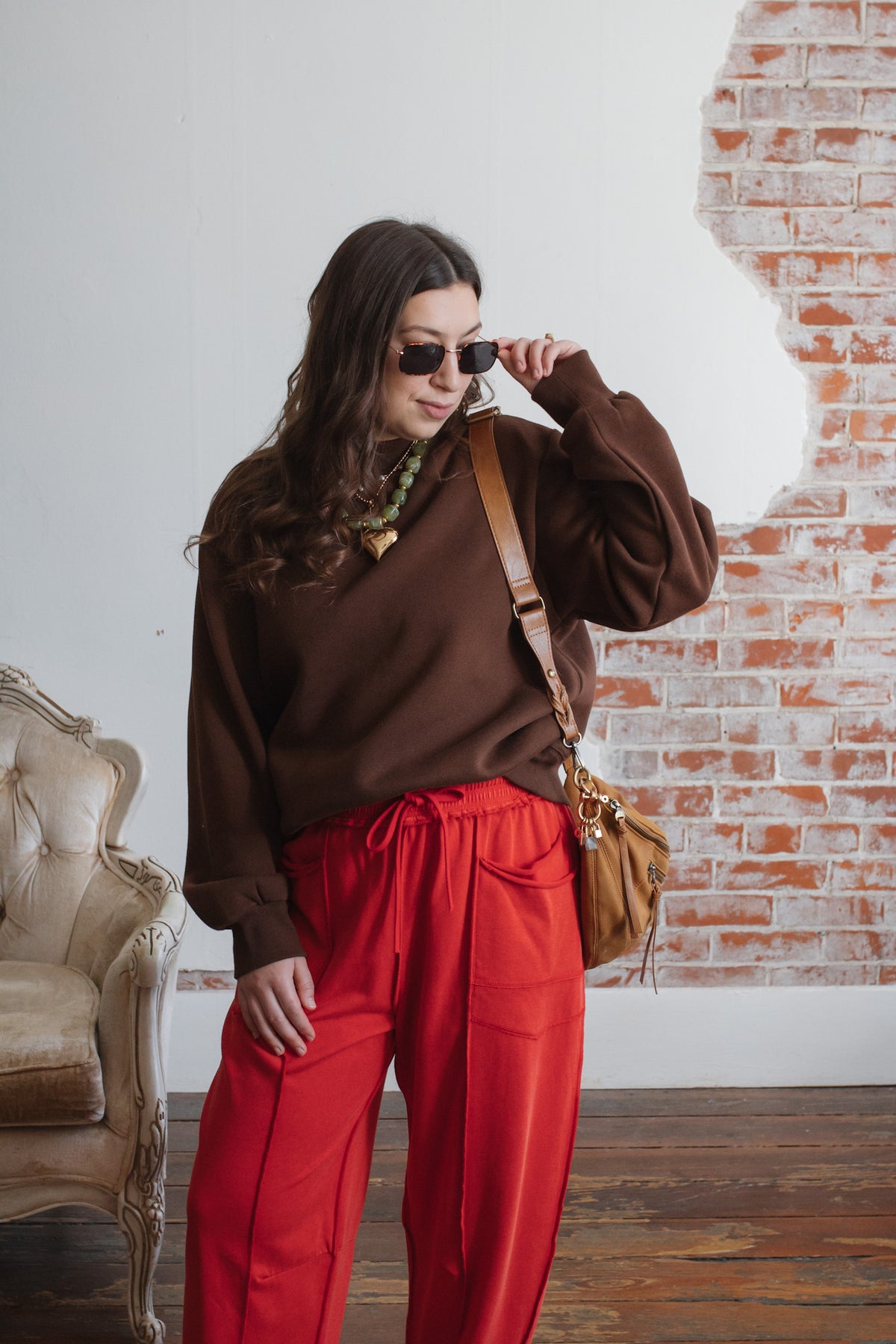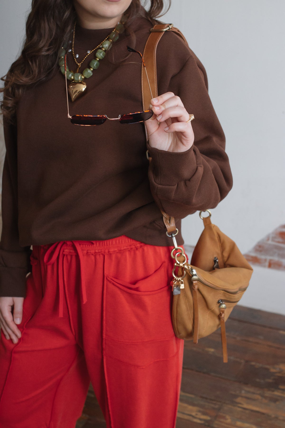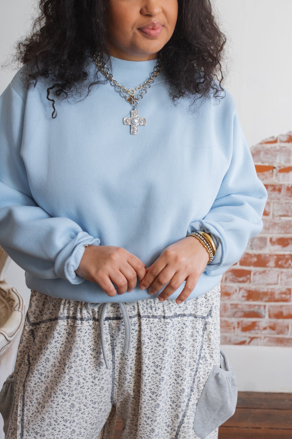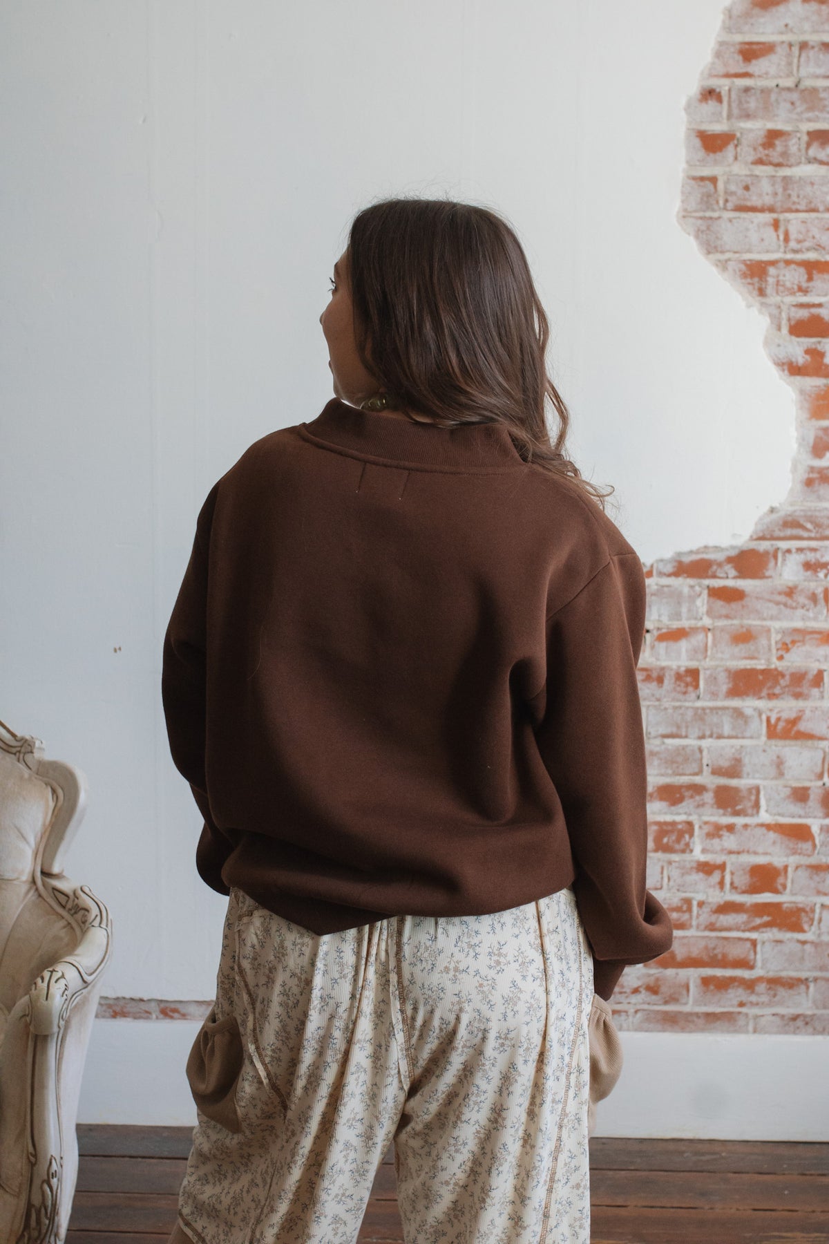 Looking for a not-so-basic basic? The Quinn Mock Neck Sweatshirt is the secret sauce to effortless layering and polished comfort. Made from an ultra-soft cotton blend with that just-right slouch, it features a mock neckline that adds a touch of structure without feeling fussy. Whether you're dressing it up with bold pants or keeping it simple with sweats, this one checks all the boxes: cozy, elevated, and endlessly wearable.