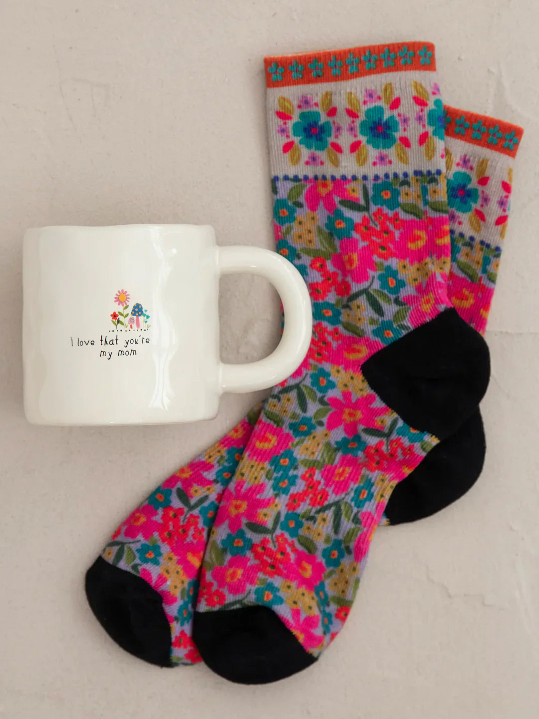 Our 2 favorite gifts in one! Everyone needs a cute new mug and pair of comfy socks!