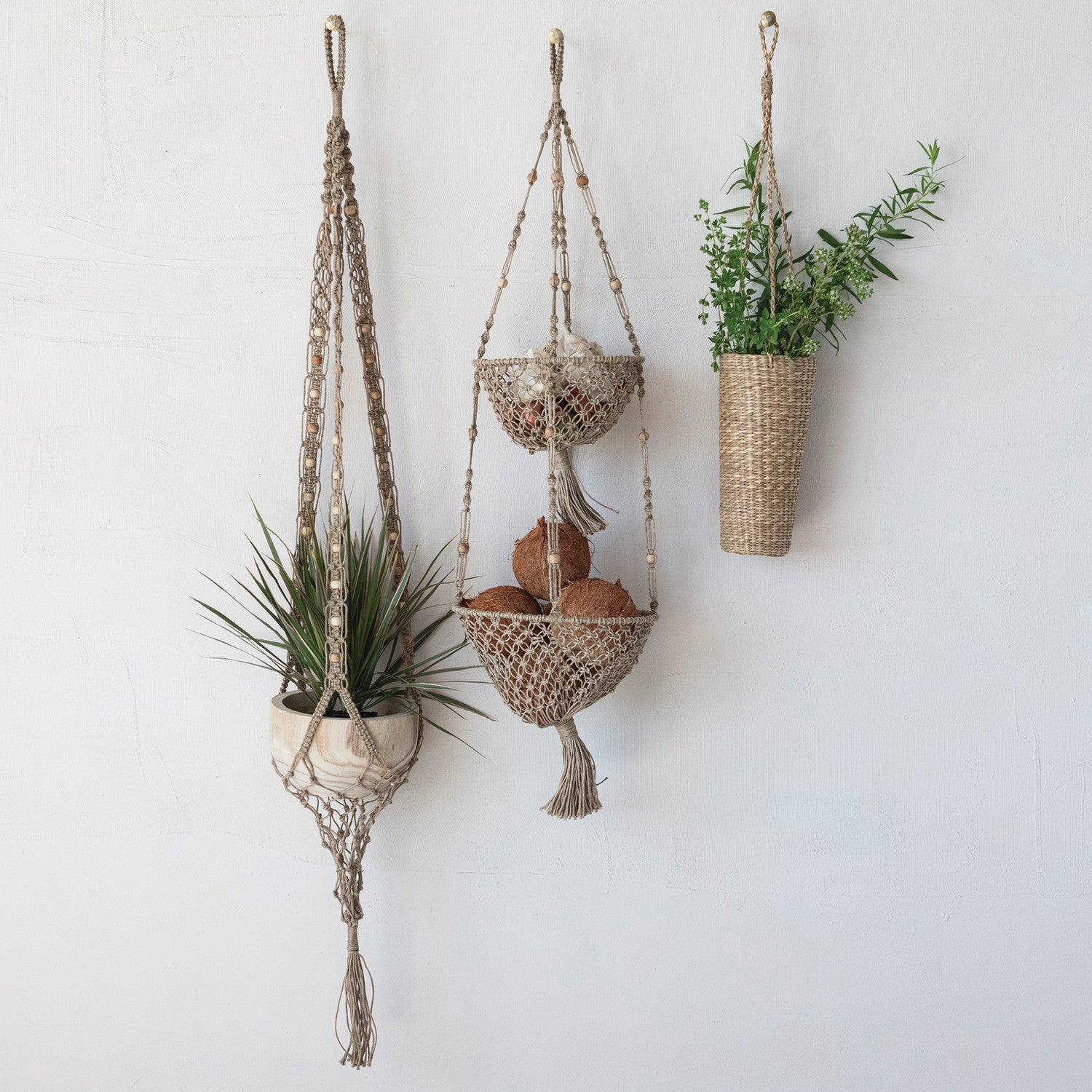 Lightweight and lovely, this tall hanging basket is hand-woven from natural seagrass with an earthy texture and organic shape. The narrow silhouette is perfect for dried florals, kitchen tools, or everyday catchalls. A looped top makes it easy to hang wherever a bit of rustic charm is needed.