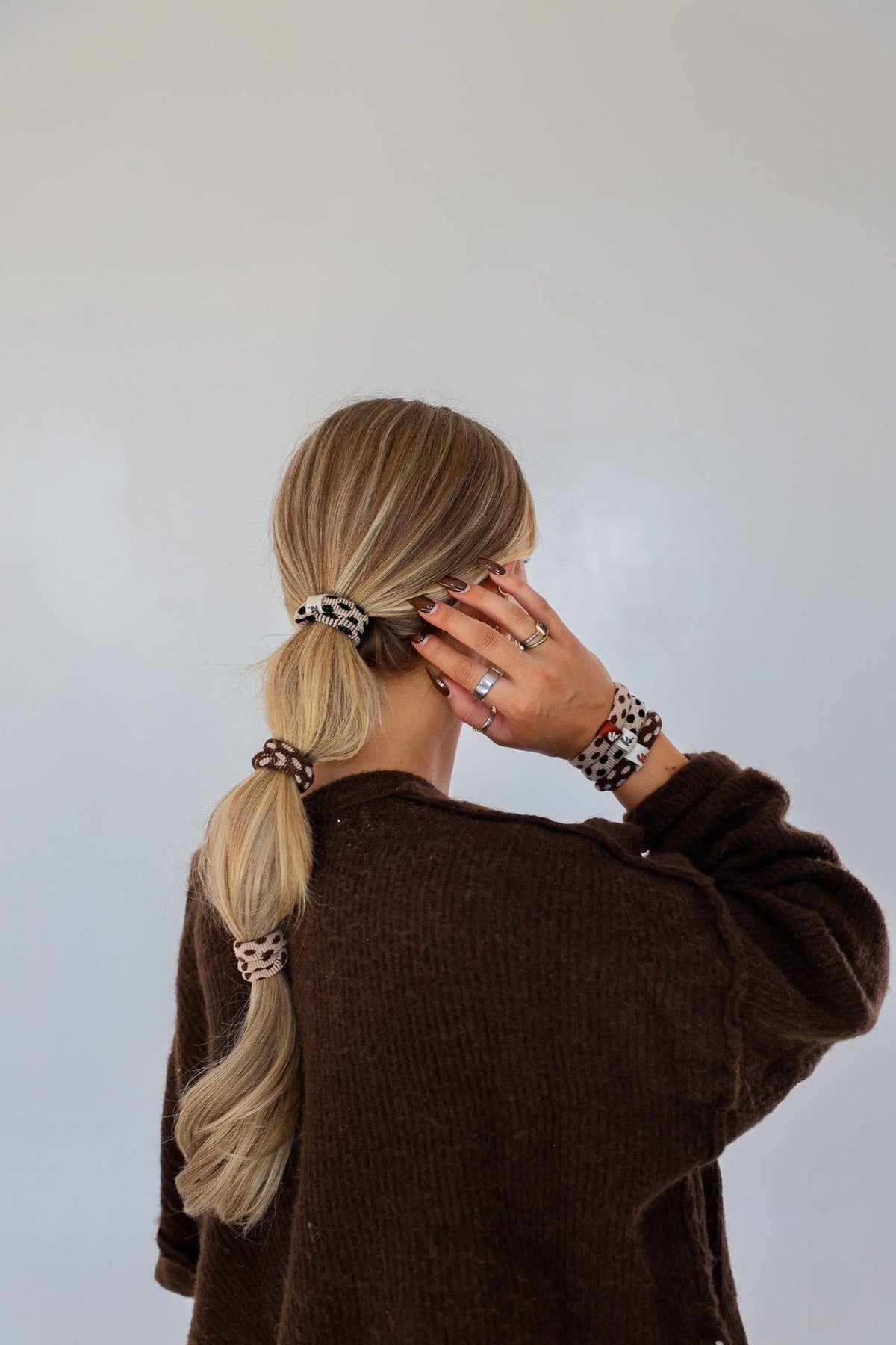 These are without a doubt going to be your new favorite hair ties! Crafted with a durable yet snug nylon material, these hair ties are designed to keep your hair in place without tugging or causing pain. They are perfect if you need a tight elastic for your high intensity workout, but still offer a stylish look and this elastic is just fabric with no elastic on the inside to damage your hair. Say goodbye to breakage around your face. Works for thin to thick hair! Perfect for pool days, high intensity workouts, or everyday use!