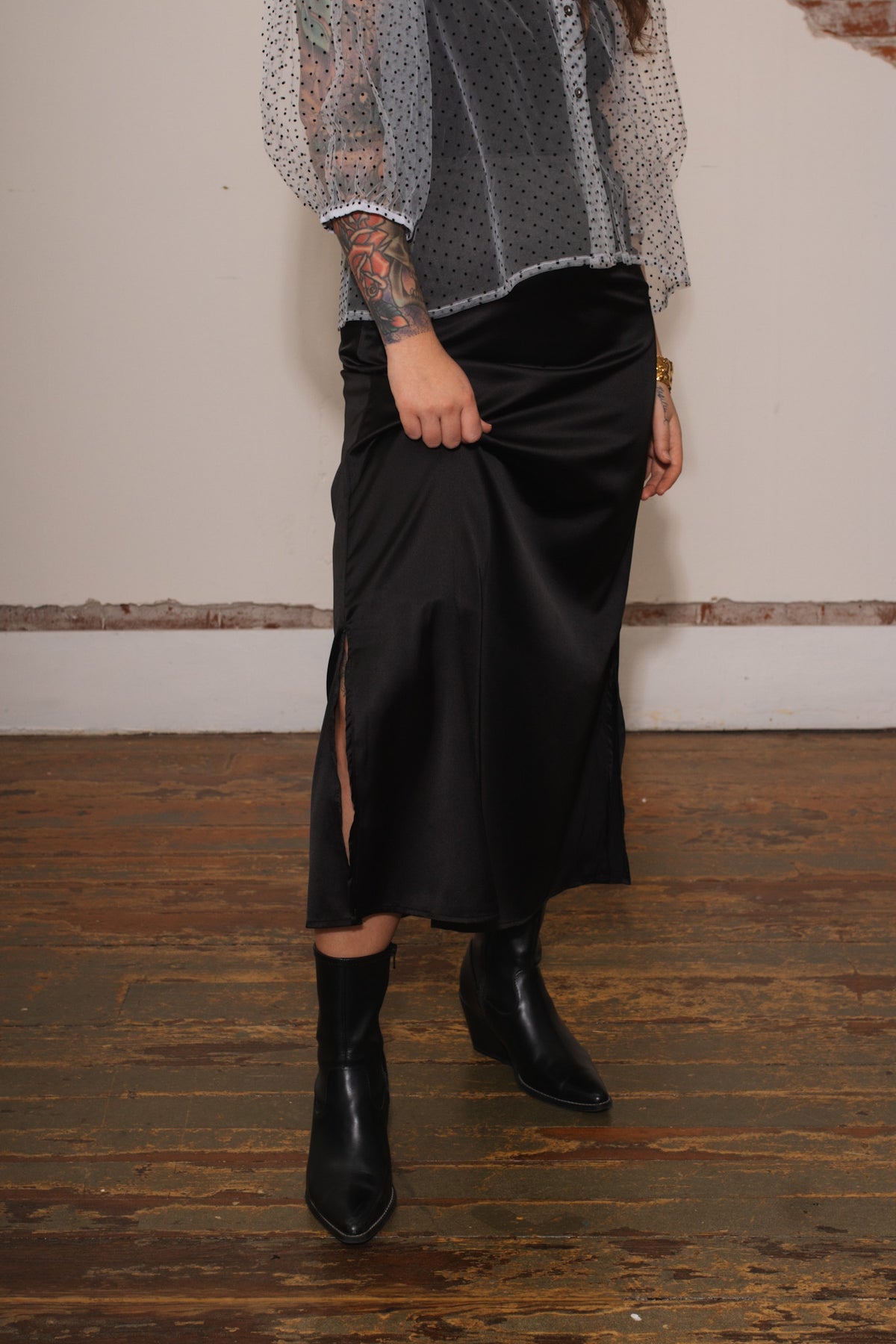 Looking for an easy, elegant skirt you can wear on repeat? The Ellowen Satin Midi Slip Skirt brings that perfect mix of polish and comfort, with a sleek drape and versatile fit. Designed with a smooth flat front and elastic back waistband, it hugs just right without feeling restrictive. The subtle side slits make it wearable from day to night, whether you dress it up or down.