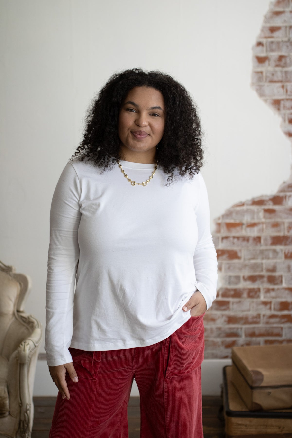 The Riley Long Sleeve Tee is that just-right base layer, soft, breathable, and designed for everyday wear. With a clean scoop neckline, true-to-size fit, and a naturally stretchy feel, it’s a wardrobe foundation you’ll reach for over and over again.