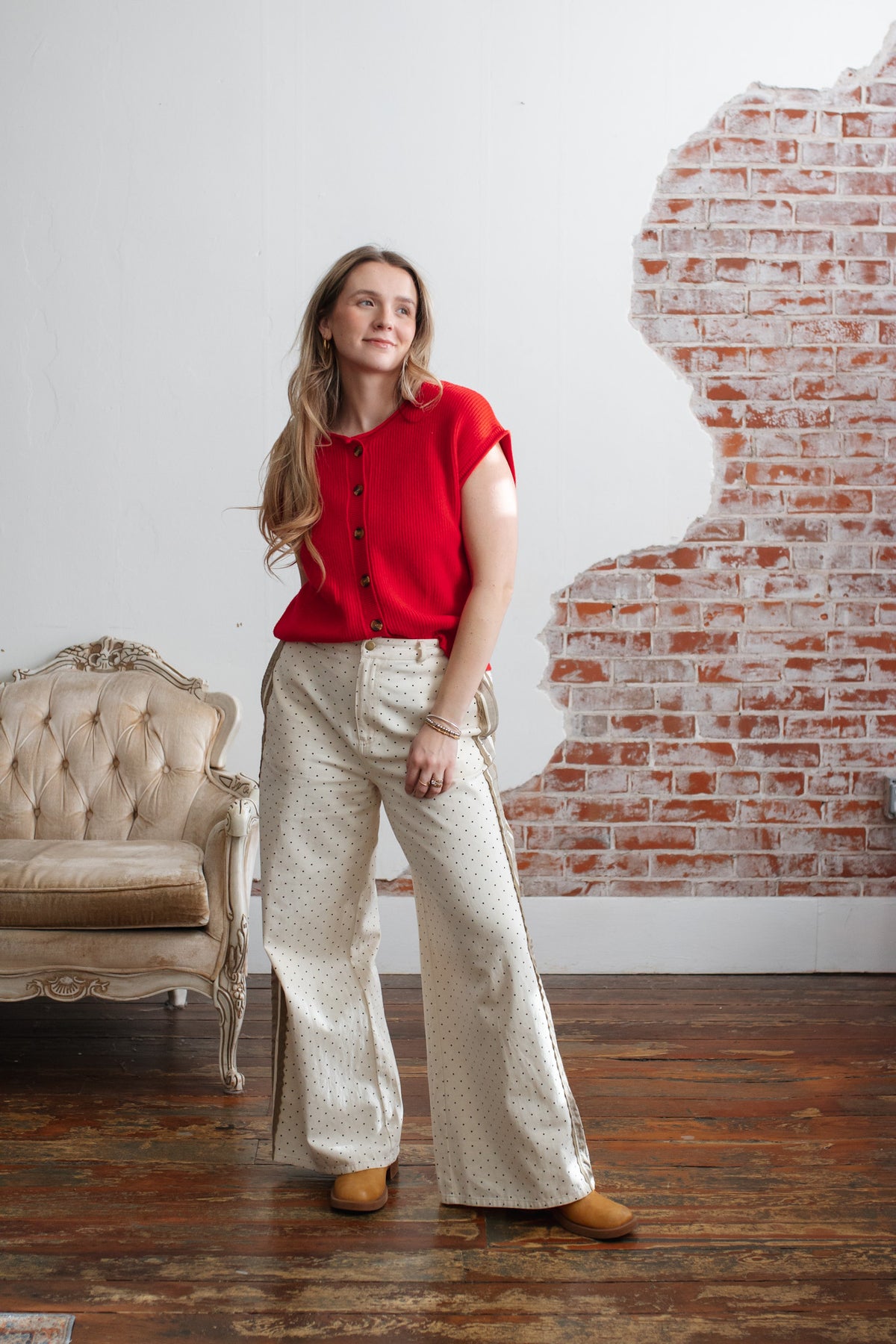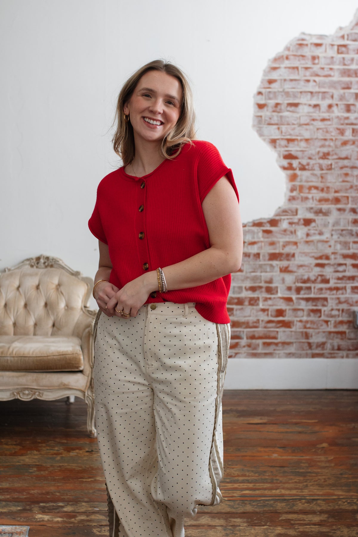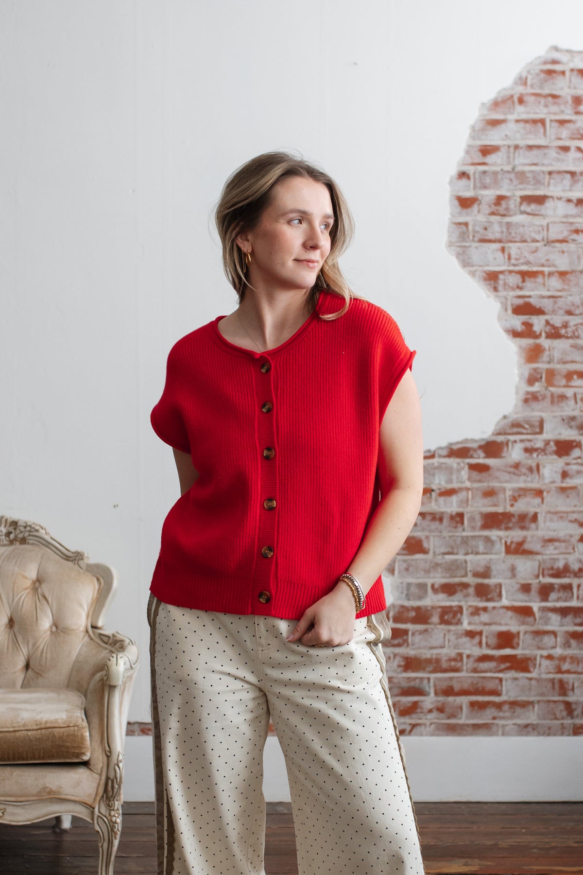 Looking for a lightweight knit top you can wear now and layer later? The Daisy Knit Short Sleeve Sweater Top brings that perfect balance of polished and playful, with its soft ribbed texture and statement button front. It feels elevated enough for work, yet easy enough for everyday styling.