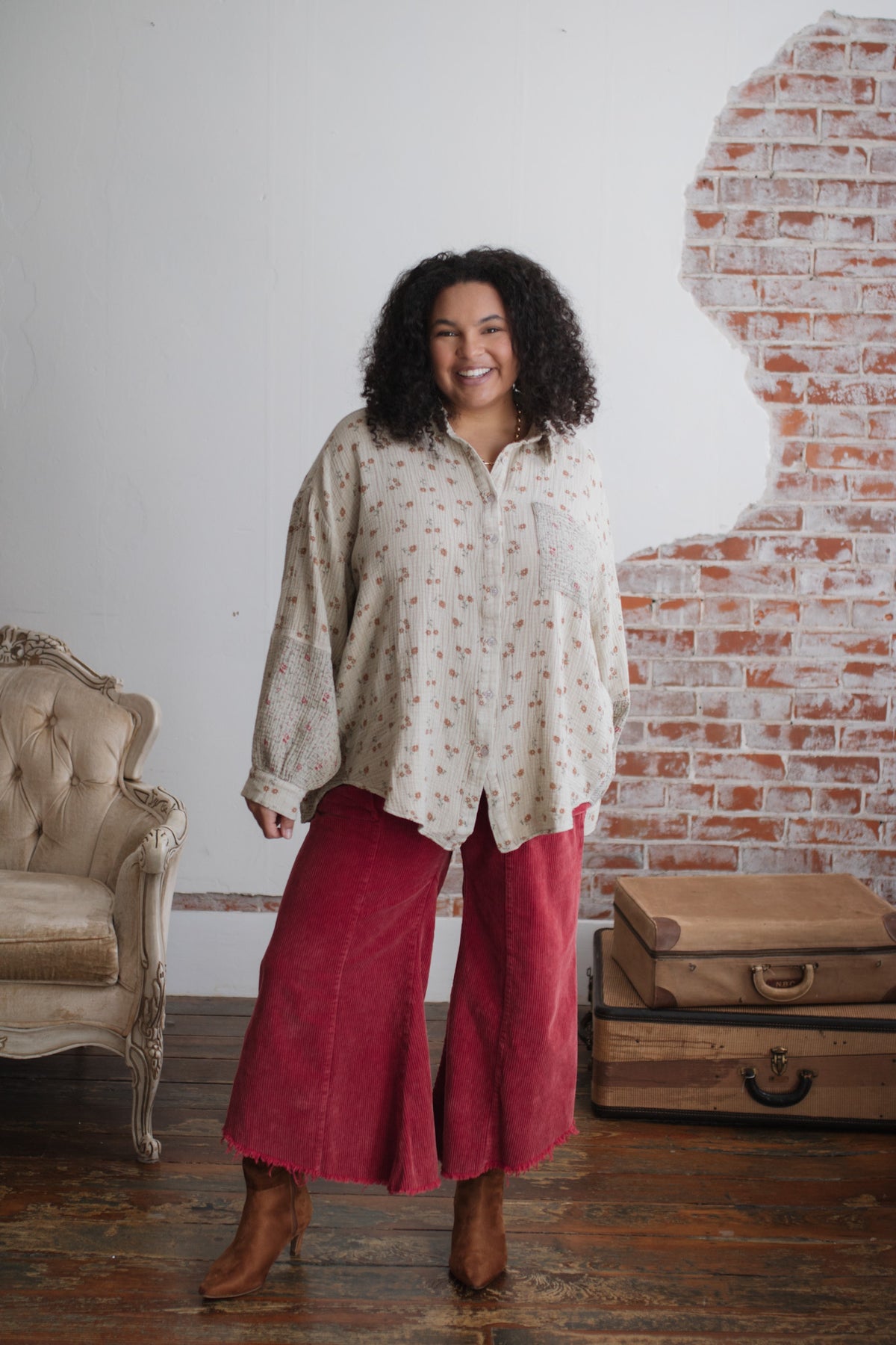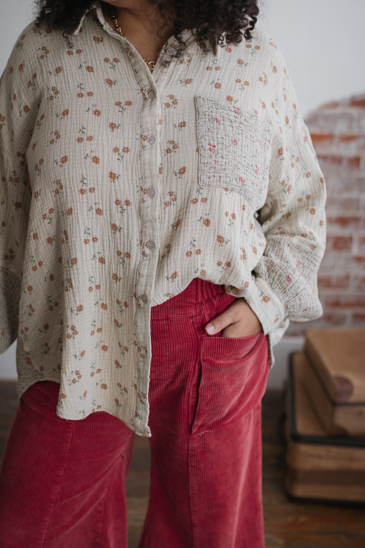 A breezy essential with soft texture and feminine flair. The Flora Washed Gauze Button Down is crafted from 100% cotton with an allover floral print and a lived-in washed finish. With its relaxed fit, dropped shoulders, and slightly longer back hem, it's an effortless layering piece for every season.