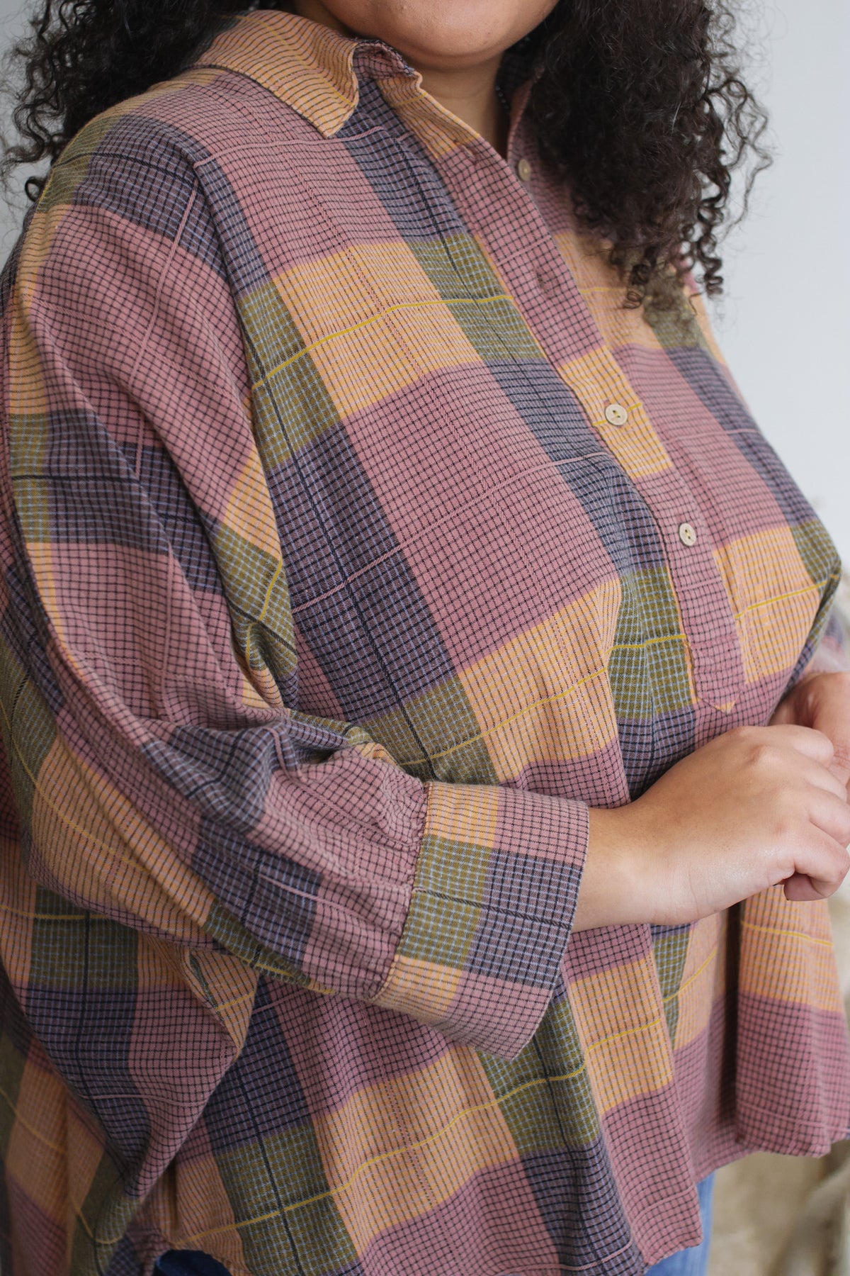 • Unique plaid color mix: golden mustard, olive, plum + dusty pink