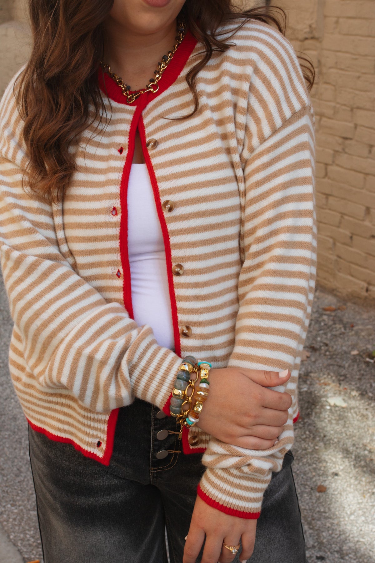 Auri Striped Contrast Button Down Cardigan