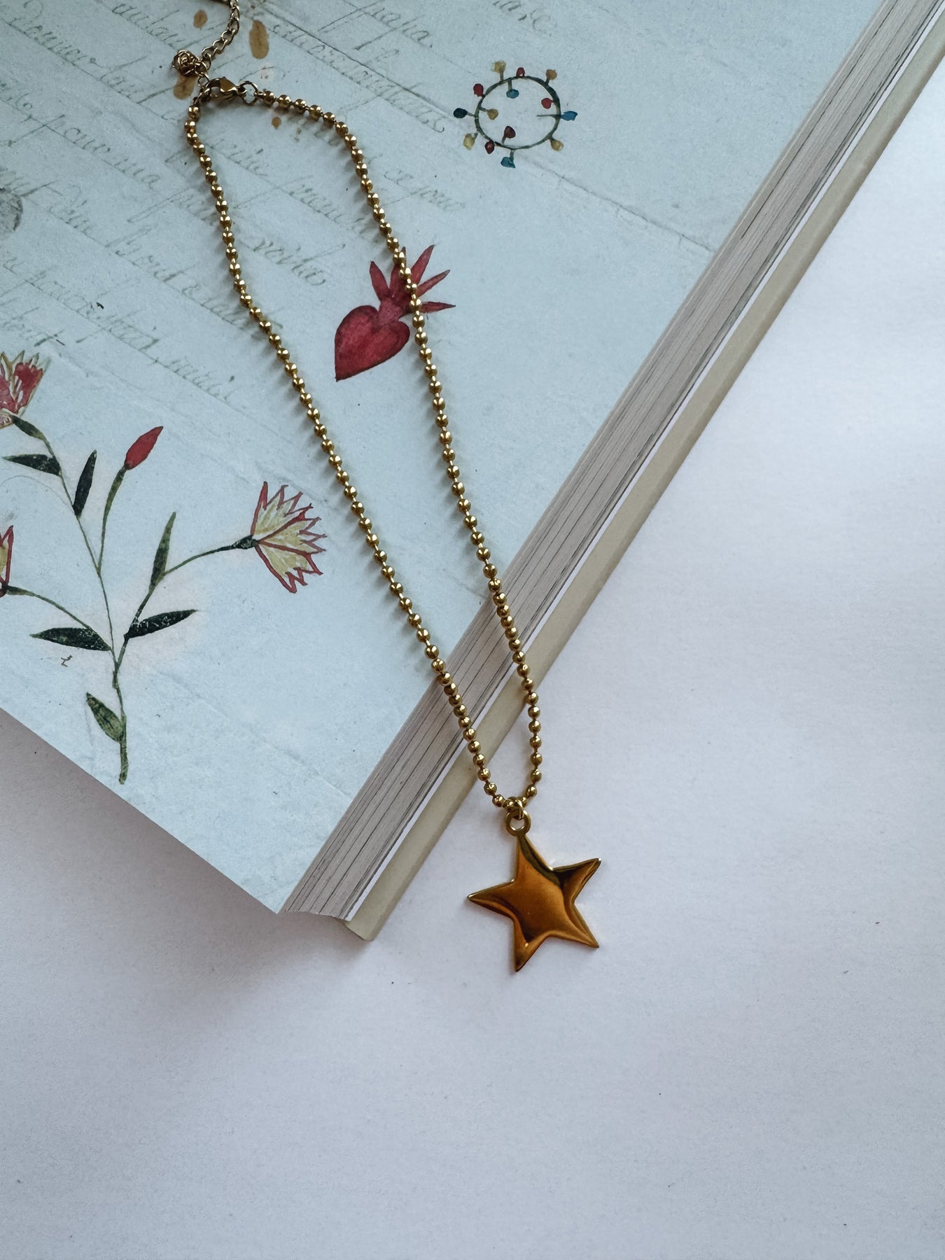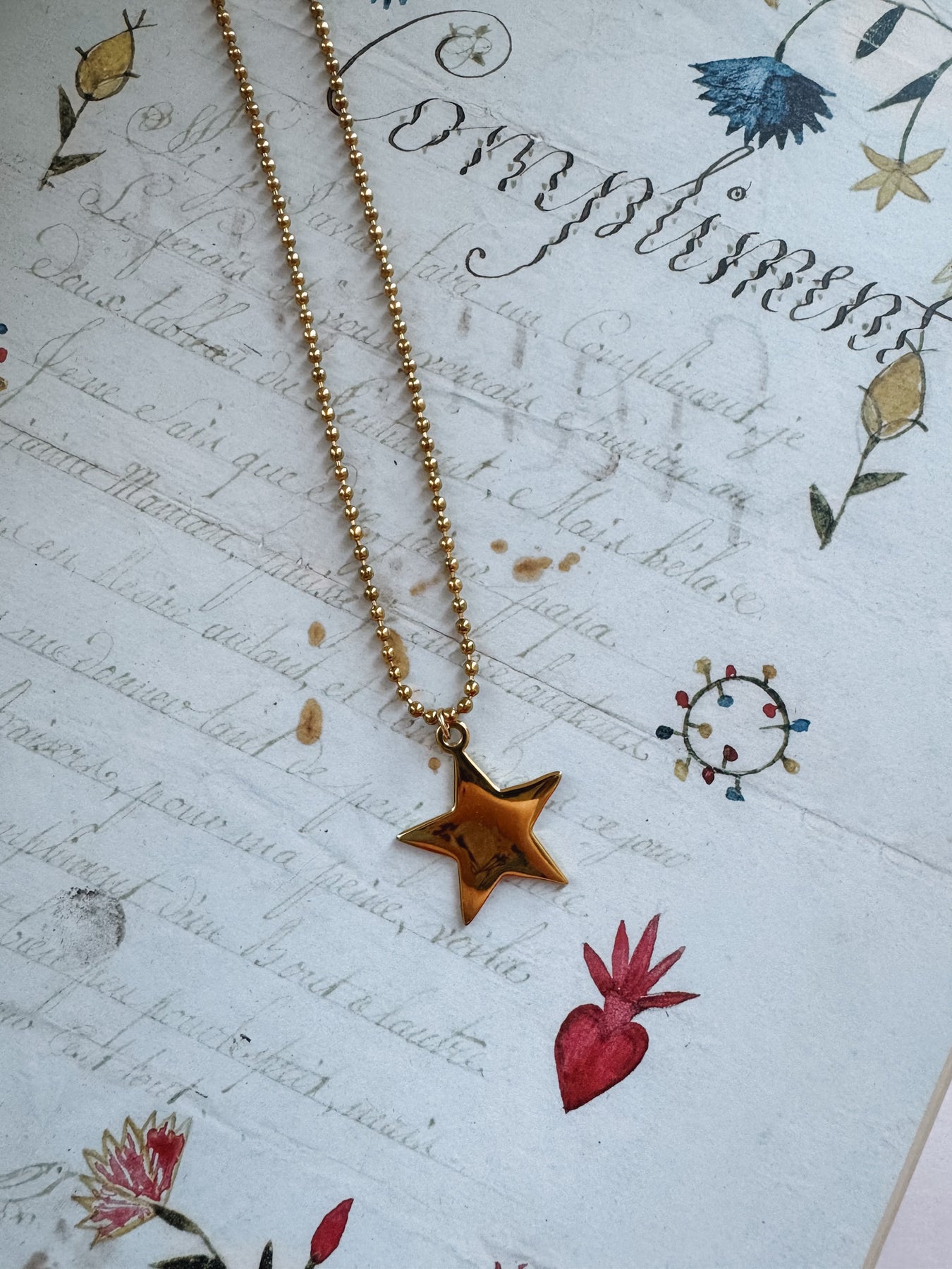 Looking for a gold necklace that feels a little dreamy, a little bold? The Blyss Necklace brings playful charm with a high-shine star pendant on a vintage-inspired ball chain. It's the kind of piece that sparks conversation and easy to style with every outfit.