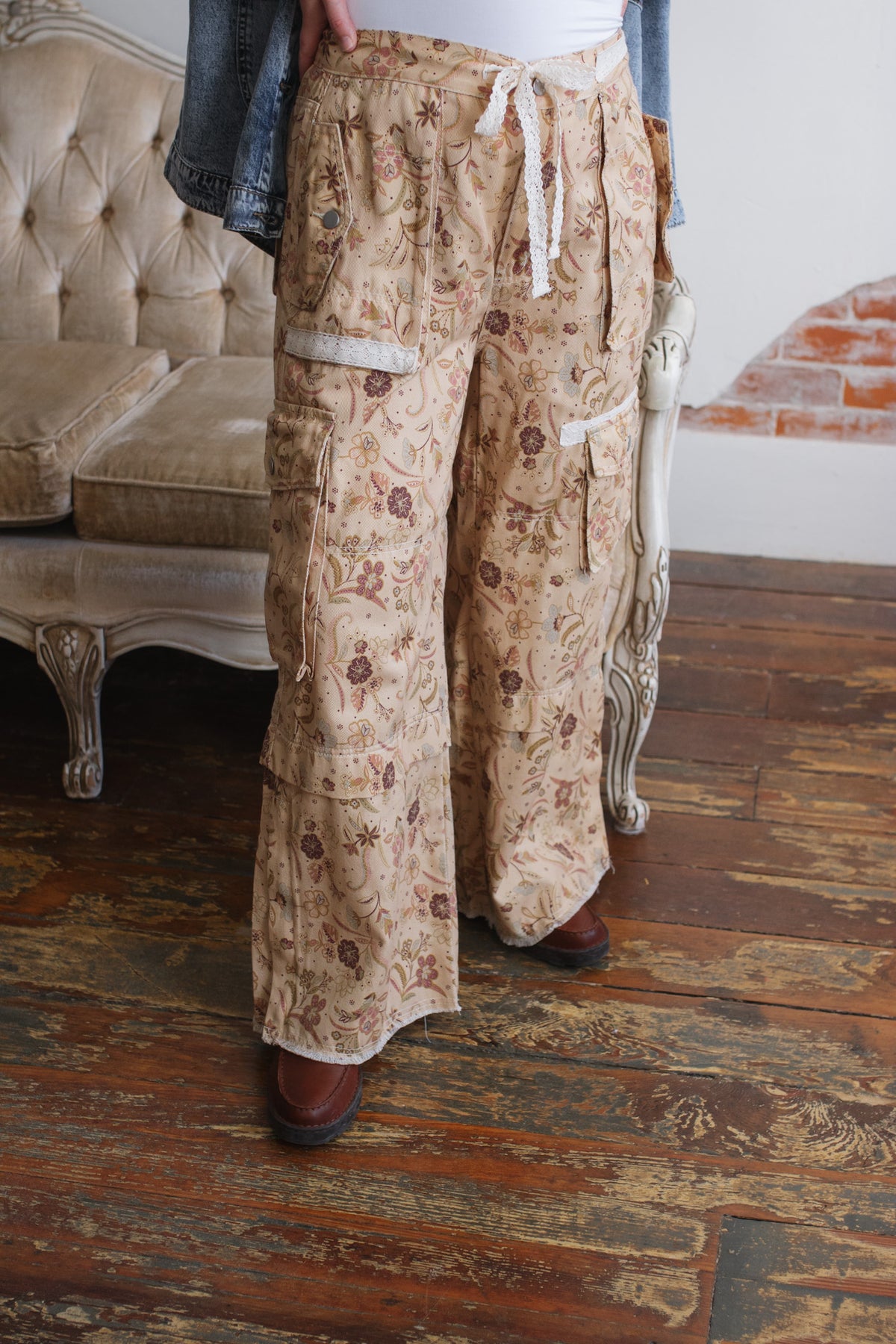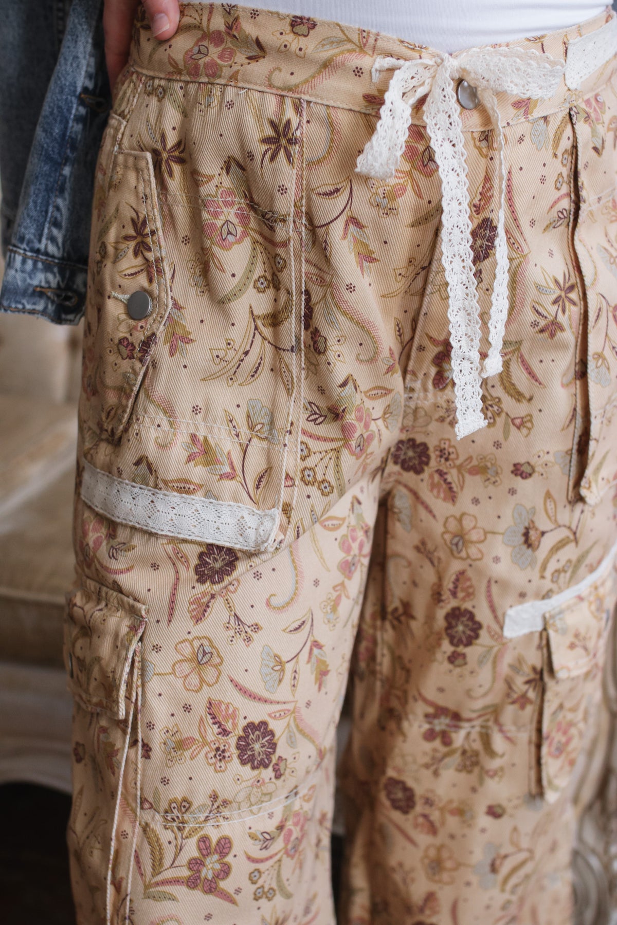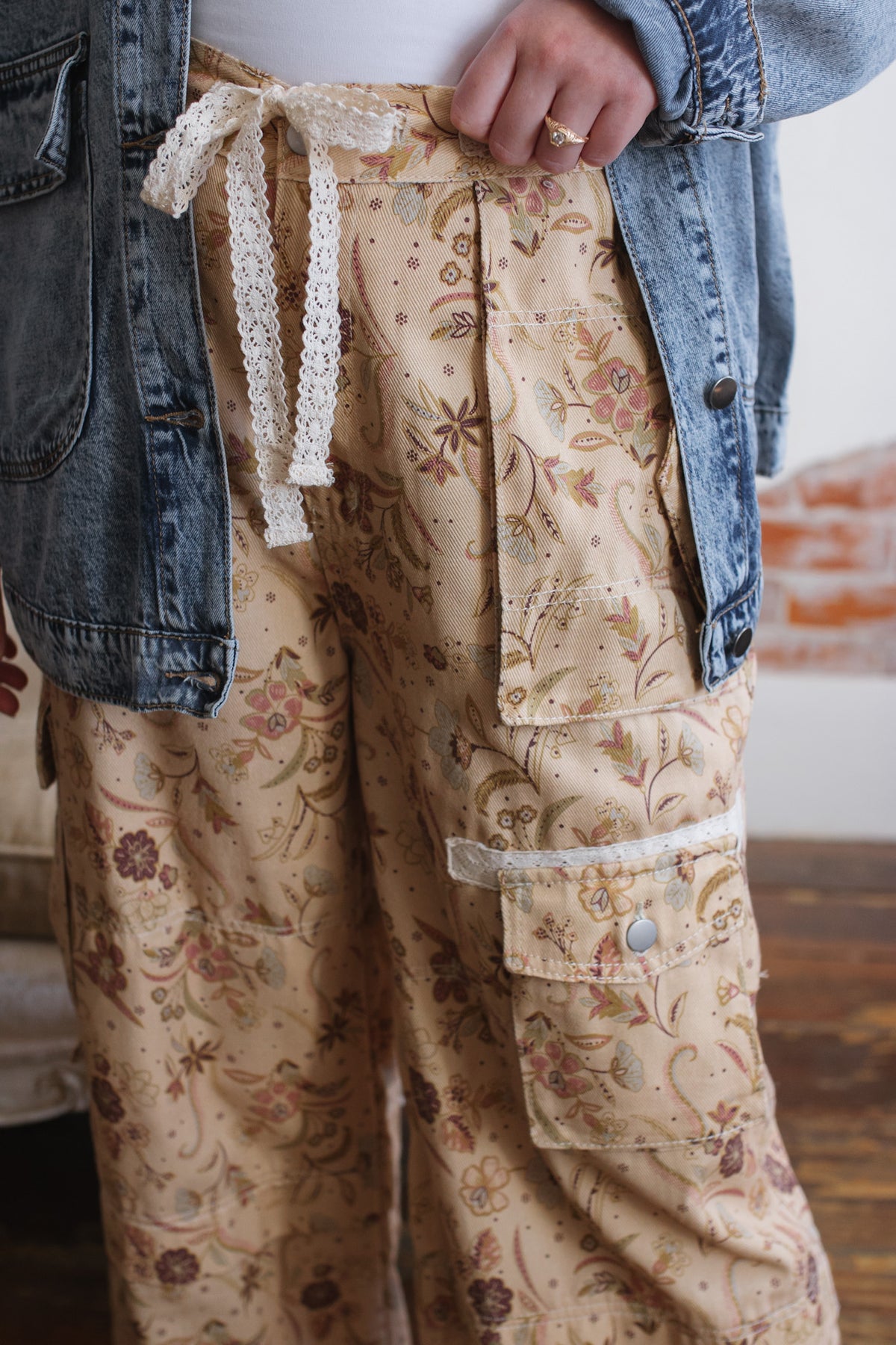 Looking for cargos with a softer side? The Emery Floral Cargo Pants blend utility and charm with their vintage-inspired floral print, roomy silhouette, and sweet lace trim. Designed with a relaxed, wide-leg cut and plenty of functional pockets, these pants are made for lounging, exploring, or layering up in laid-back style. The drawstring waist adds an extra touch of comfort, while the allover pattern keeps things playful yet grounded.