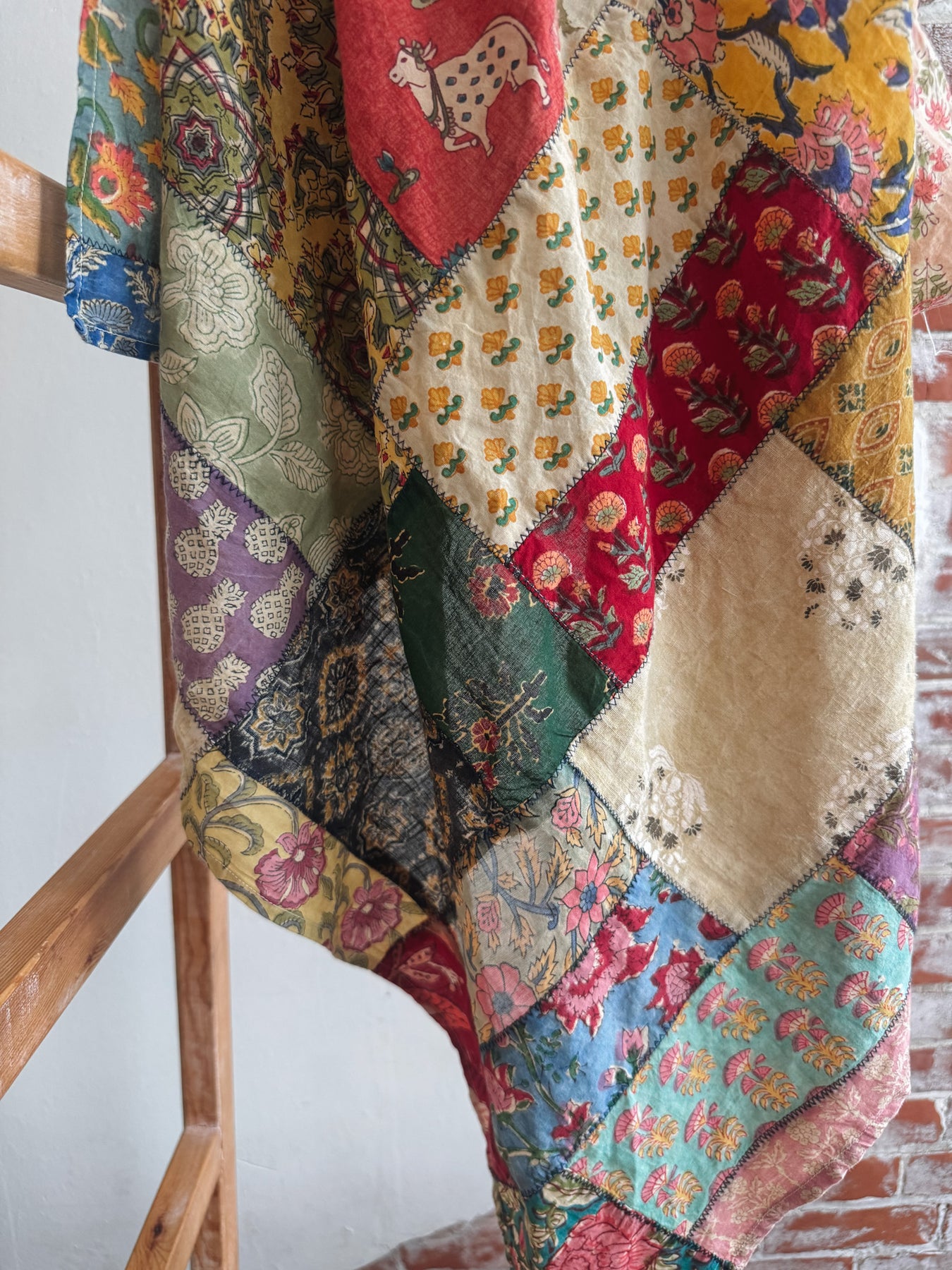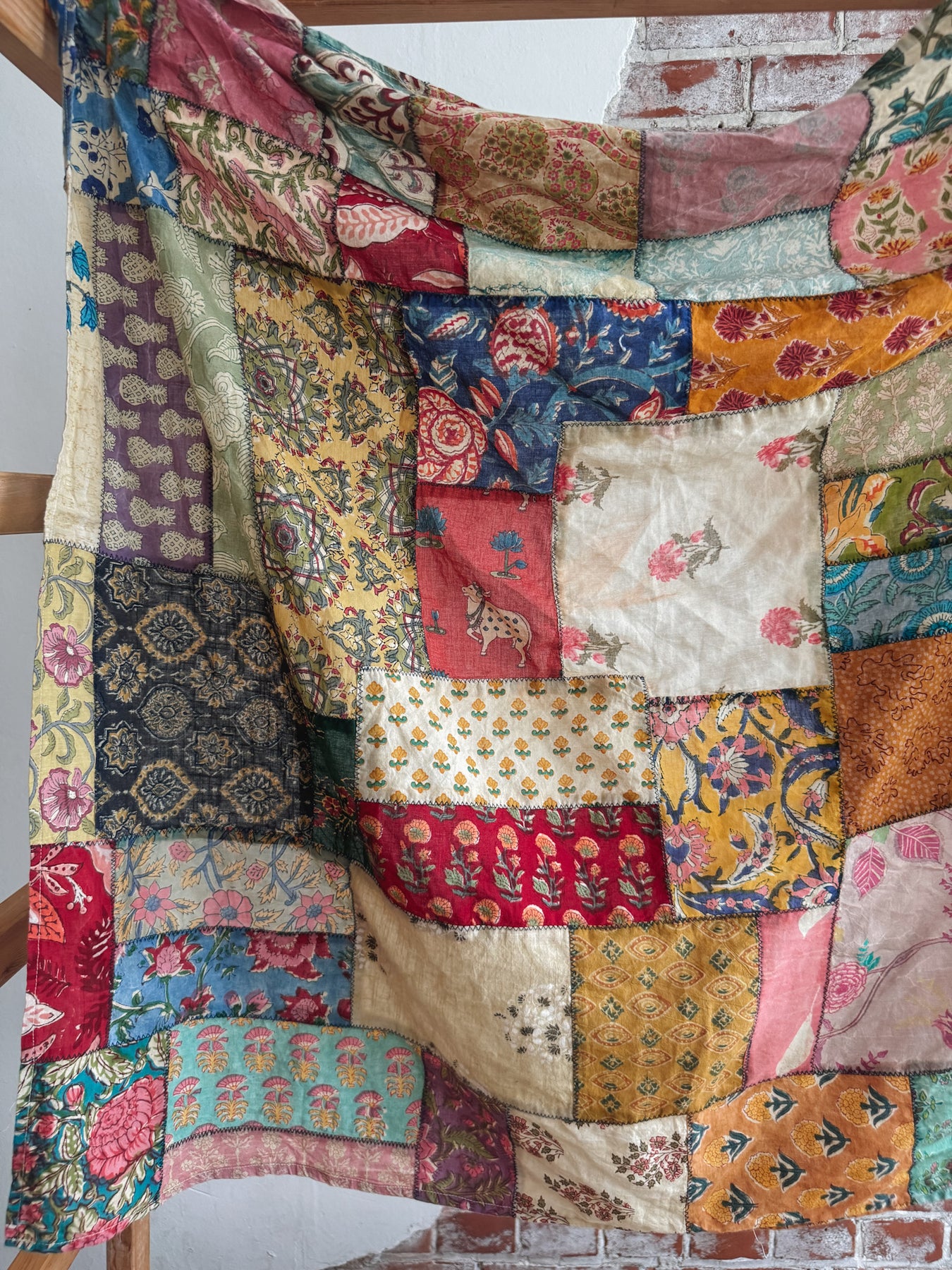 Looking for a scarf that does more than just accessorize? This one-of-a-kind patchwork square is a wearable work of art - hand-stitched, soulfully vibrant, and endlessly versatile. Whether you're styling it over a crisp white shirt, tying it at the waist for a boho wrap look, or draping it across a dresser, it adds instant character and charm to anything it touches.