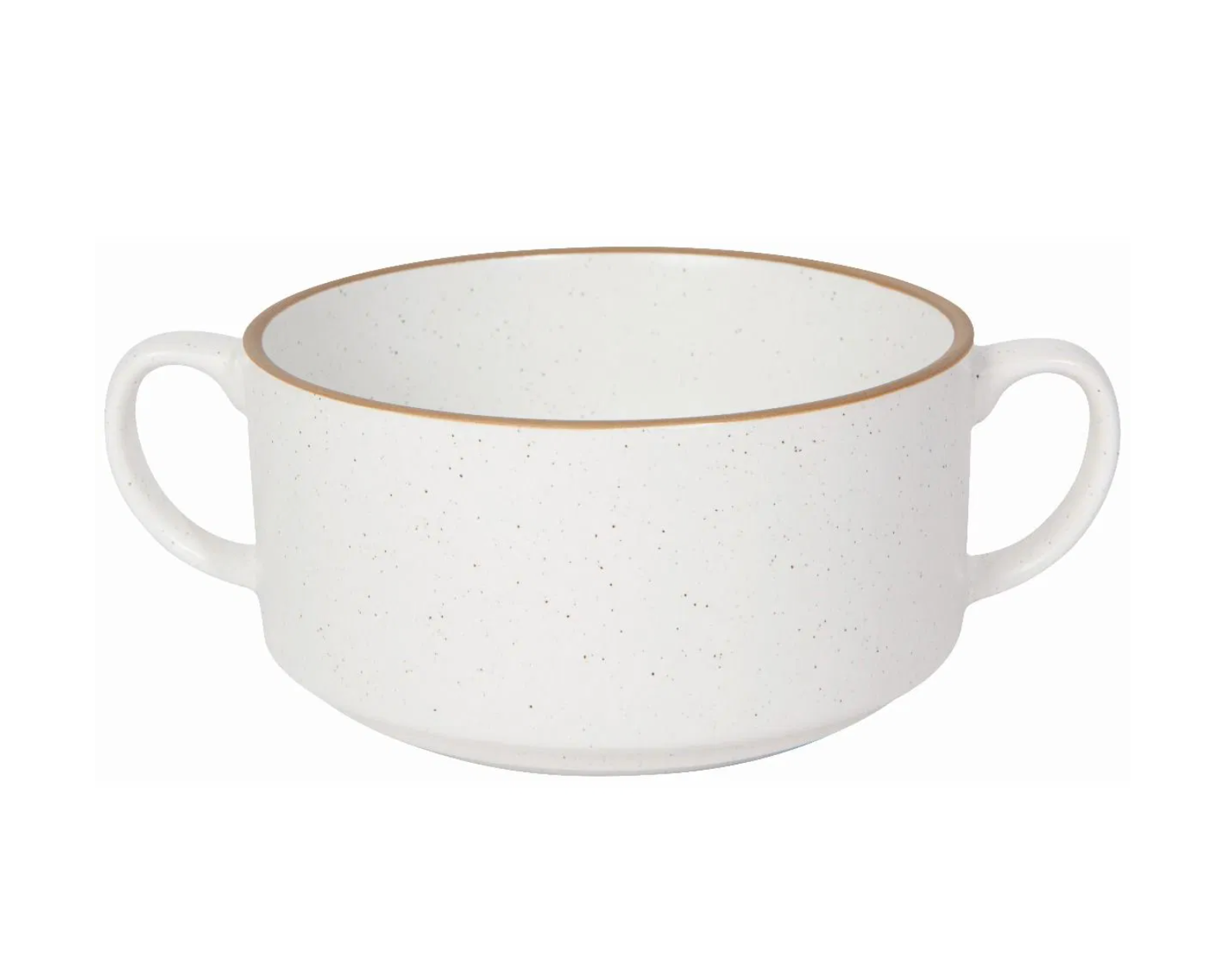Comfort food, meet your perfect match. The Hearthside Soup Bowl features a warm, speckled white glaze and a gently rounded silhouette with double handles—so you can cradle your stew, ramen, or risotto without burning your fingertips. The matte finish and soft neutral tone make this bowl feel both modern and timeless, with subtle variations in the reactive glaze that give each one a unique, handcrafted character. Ideal for cozy nights, thoughtful hosting, or just elevating your Tuesday leftovers.