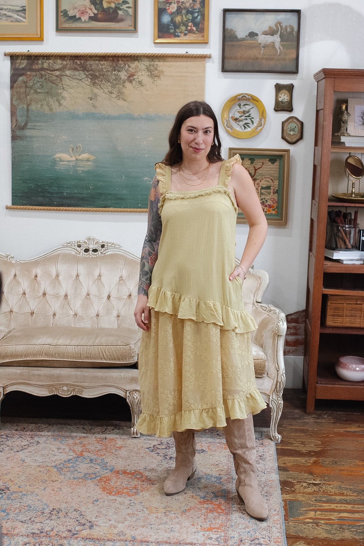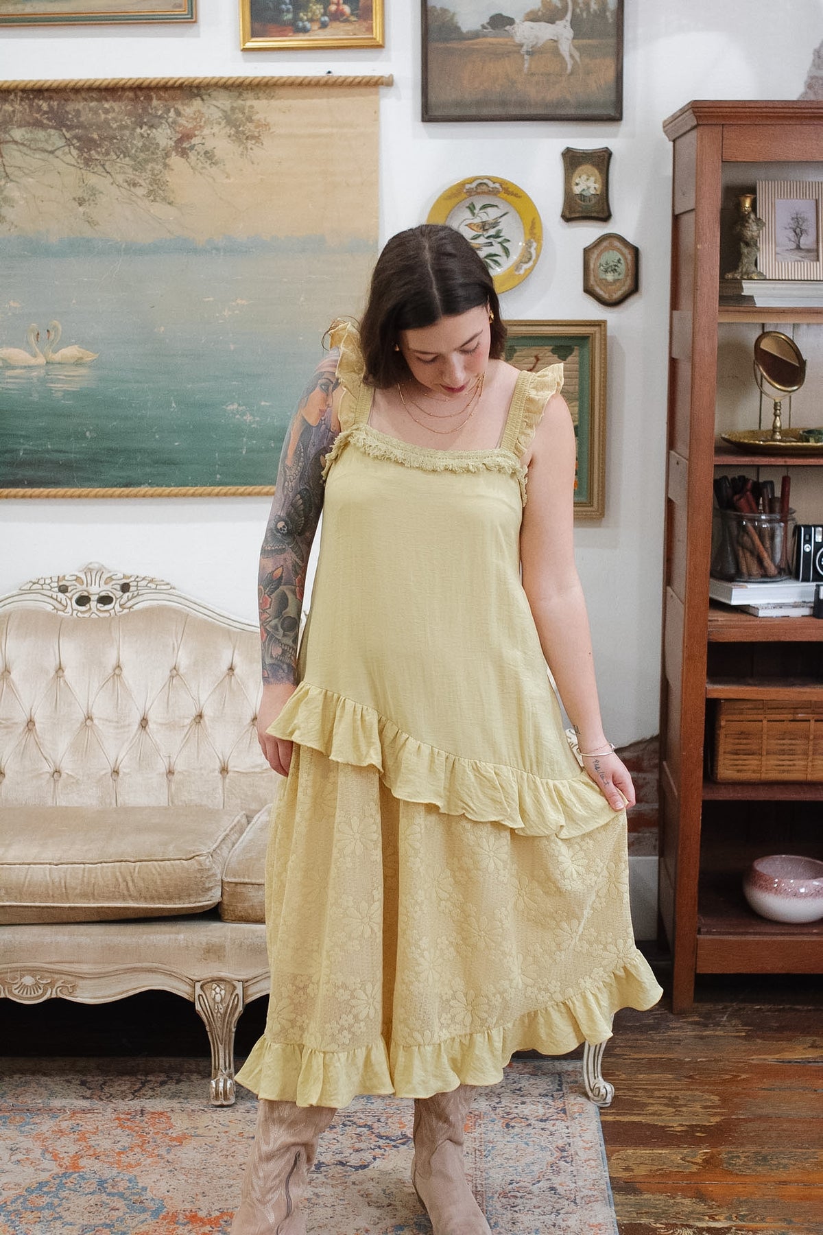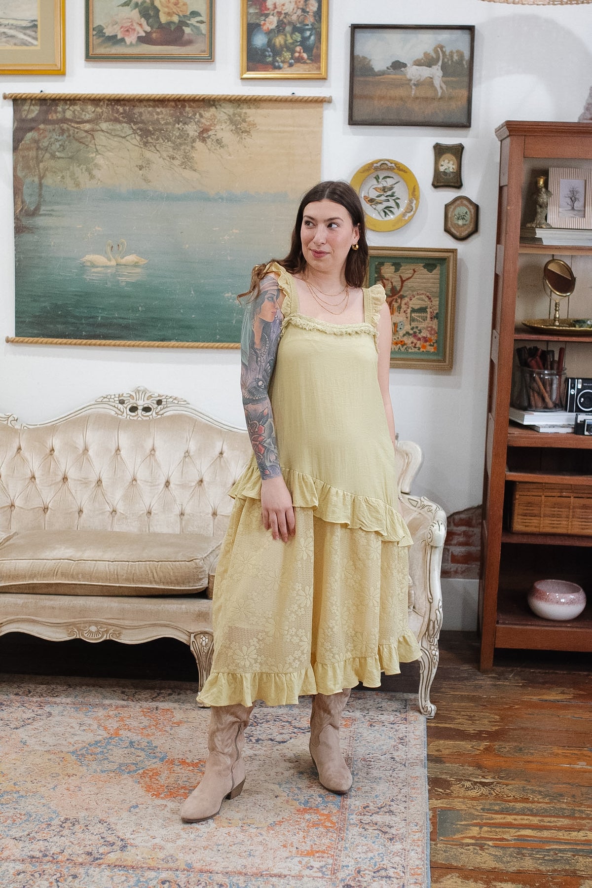 • Lightweight fabric with subtle lace texture and soft yellow hue