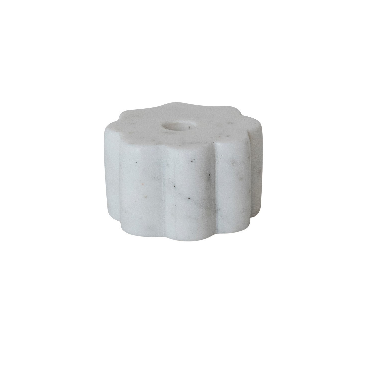 Elevate your everyday candle moments with this timeless marble taper holder. Crafted from solid white marble, this petite piece features a softly scalloped edge that adds a delicate, feminine touch while keeping a clean and classic silhouette. Perfect for intimate dinners, layered tablescapes, or styling on a shelf or mantel, its natural stone construction makes each piece beautifully unique.