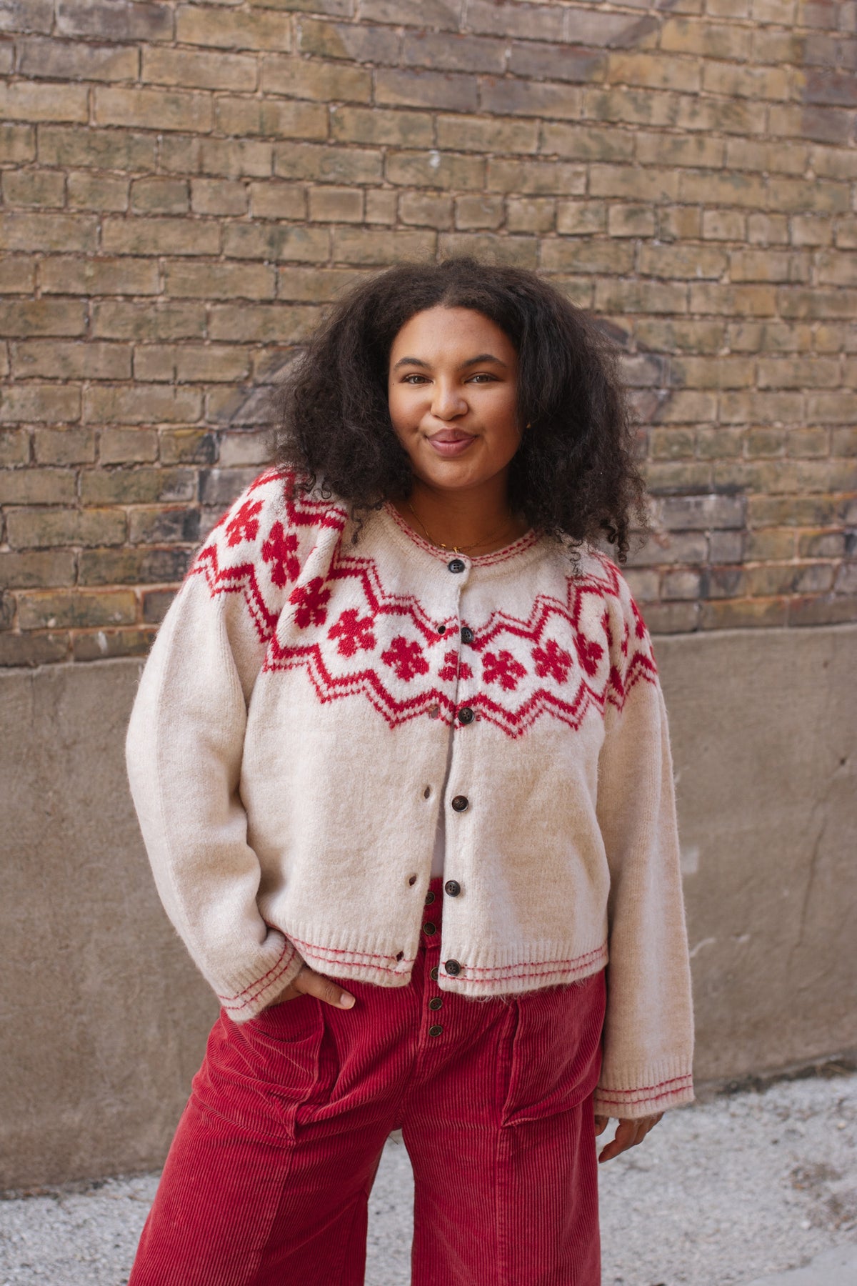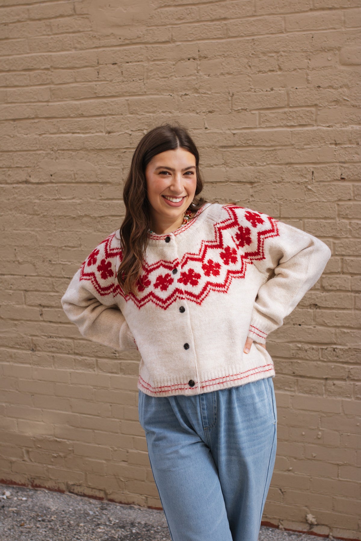 Need a cozy layer that feels festive without being over the top? The Millie Snowflake Knit Cardigan blends classic holiday charm with everyday ease, thanks to its bold red-and-ivory motif and soft, plush knit. It’s designed to be warm but breathable, perfect for layering over a tee or under your favorite coat. Whether you're heading to the tree lot or just sipping something cinnamon-spiced, Millie makes every moment feel a little more seasonal.