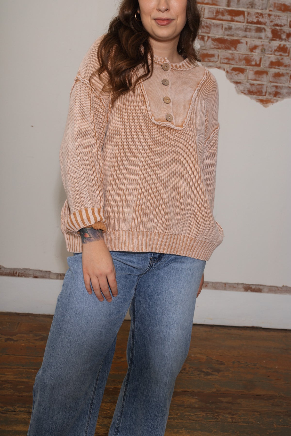 Looking for a cozy sweater that feels like a vintage find but wears like a modern favorite? The Ray Chunky Knit Henley Sweater blends texture, comfort, and charming detail in one everyday essential. Its soft cotton yarn and easy silhouette make it perfect for layering, while the contrasting knit panel and wooden button placket add just the right amount of character.