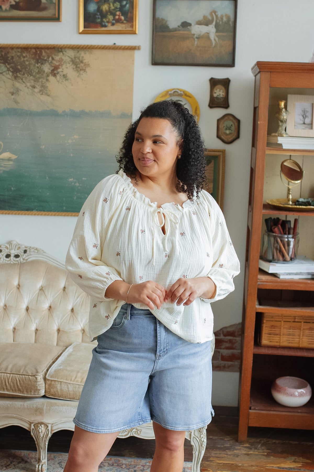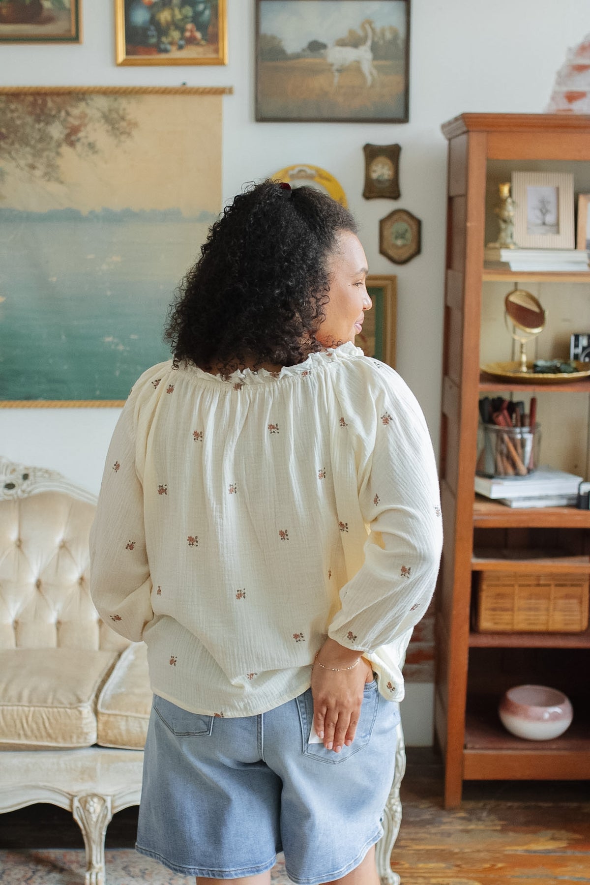 Soft, airy, and just the right amount of feminine. The Sammy Embroidered Floral Gauze Top has that effortless, throw on and go feel with delicate embroidery and a breezy silhouette that moves with you. It’s light, relaxed, and one of those pieces that feels as good as it looks.