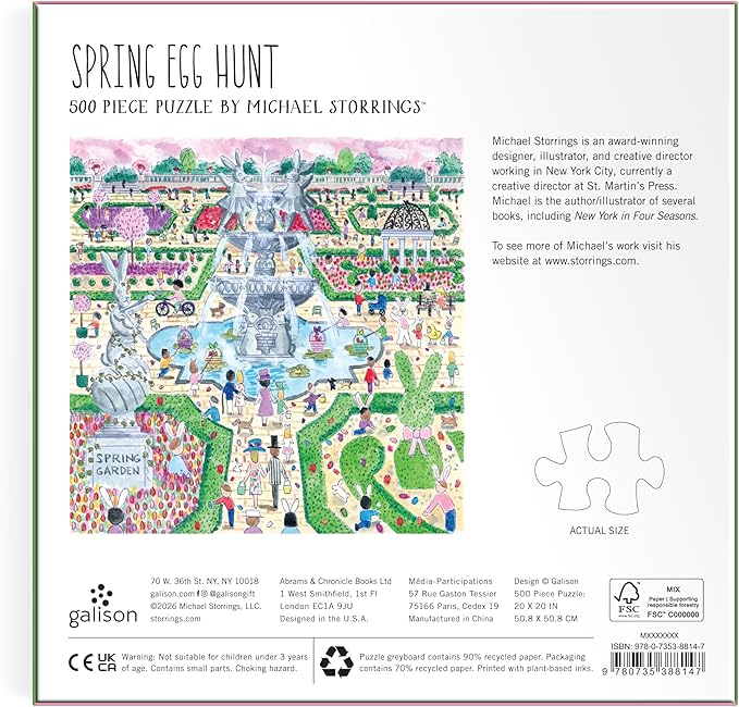 Looking for a puzzle that captures the cheerful spirit of spring? The Michael Storrings Spring Egg Hunt 500 Piece Puzzle by Galison brings a festive park scene to life, filled with families, blooming trees, and children searching for colorful Easter eggs. Each piece reveals more of the joyful celebration, drawing you into a bright afternoon of laughter, tradition, and seasonal charm. Whether you’re enjoying a relaxing puzzle session on your own or gathering around the table with loved ones, this delightful puzzle offers a fun and heartwarming way to celebrate the magic of spring.