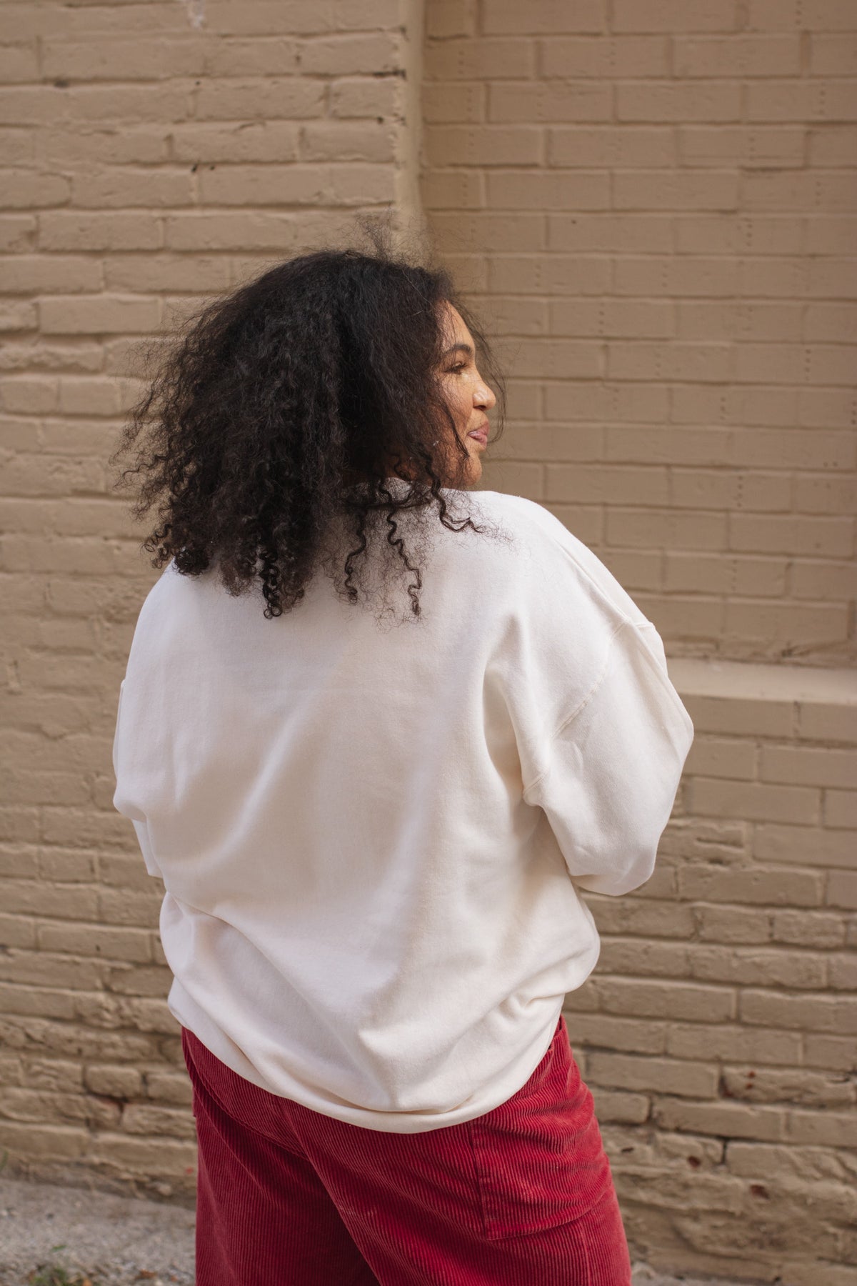 Fit Details: Relaxed, classic crewneck fit with dropped shoulders and ribbed cuffs