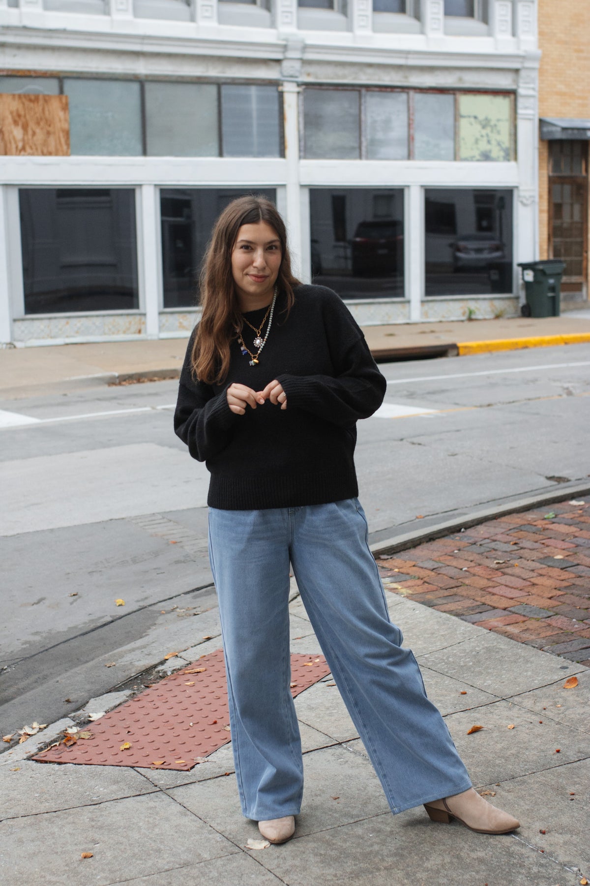 A forever favorite, the Whitney Classic Crewneck Sweater is a wardrobe staple with timeless appeal. This essential pullover features a true-to-size fit with a soft, stretchy knit that's comfortable for all-day wear. The classic crew neckline and rich black hue make it endlessly versatile for layering or wearing solo.
